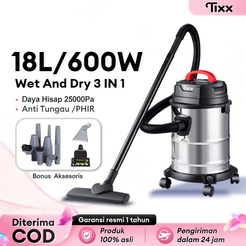 TIXX 18L Vacuum Cleaner 25000PA Low Watt 600W Debu Rumah Vacuum Cleaner Wet And Dry 3 IN 1