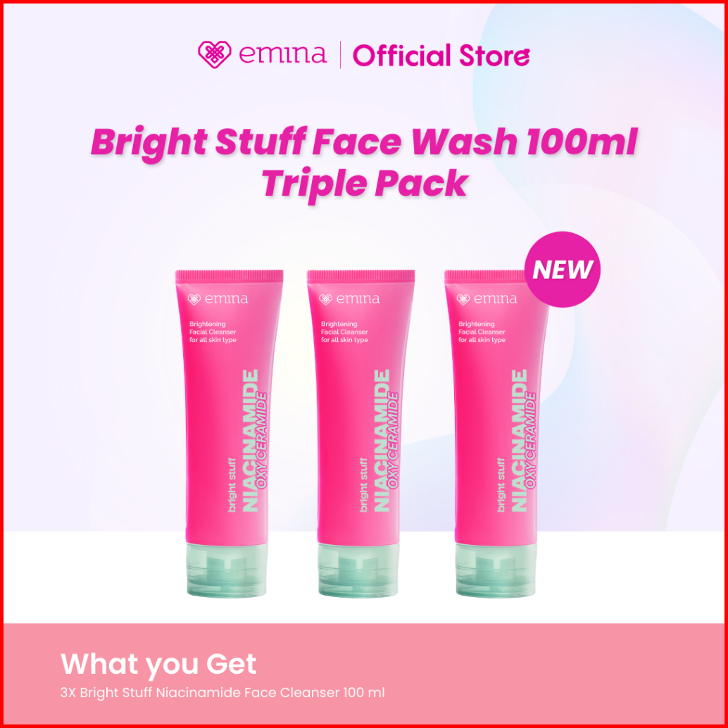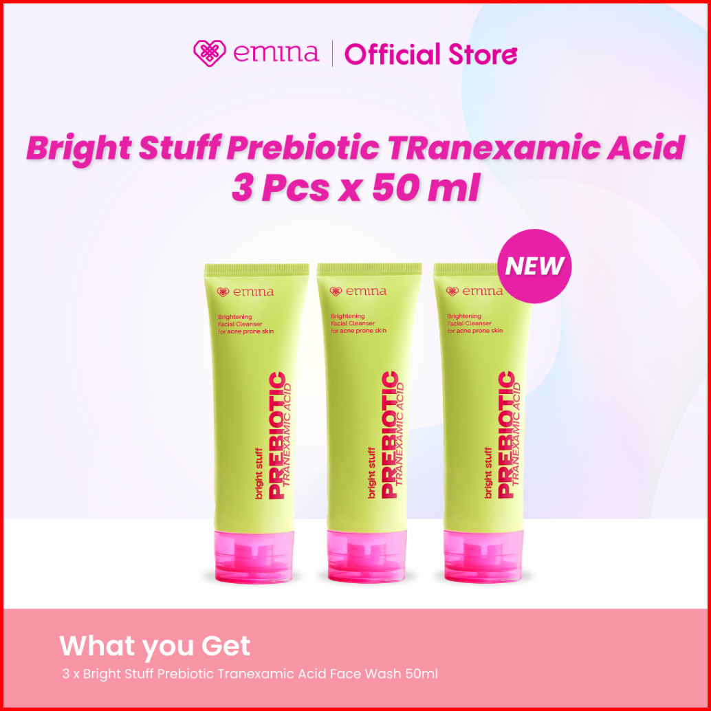Triple Pack Emina Bright Stuff Niacinamide Emina Prebiotic Tranexamic Acid Face Wash For Acne Prone Skin - Sabun Muka Ce