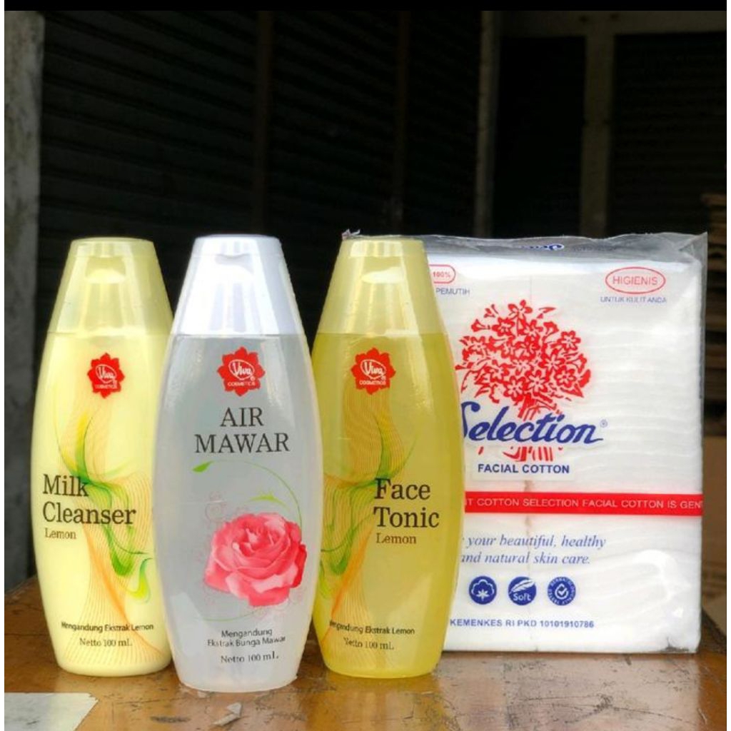 Paket Viva Pembersih Wajah 4in1 100ml Milk cleanser , Face tonic , Kapas selection , Air mawar