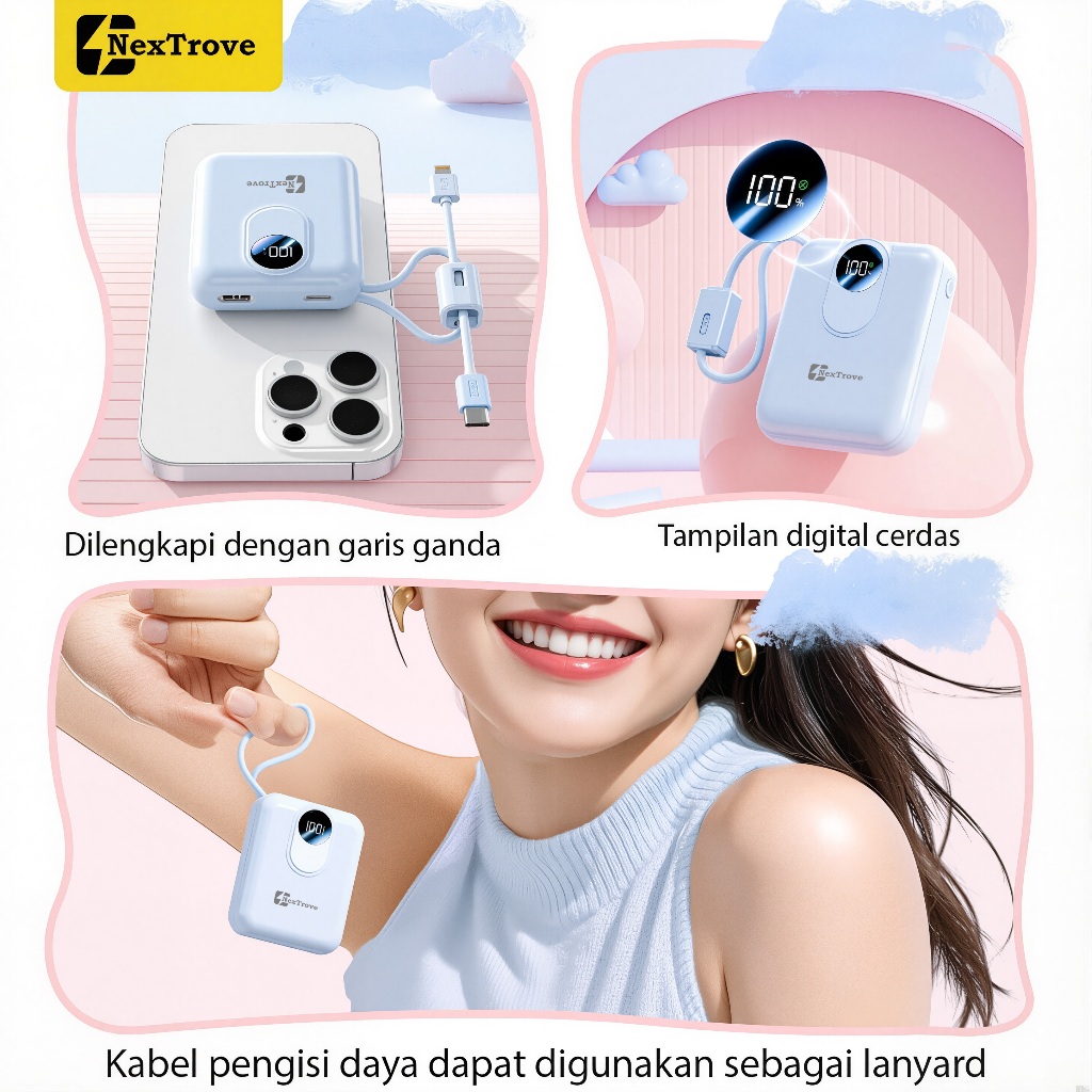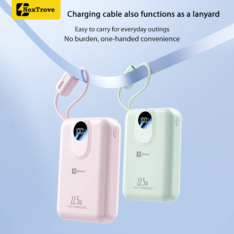 NexTrove Powerbank Mini 20000mAh 22.5W Built in Cable Fast Charging With Lightning & Type C For Ip/Android Power Display Available