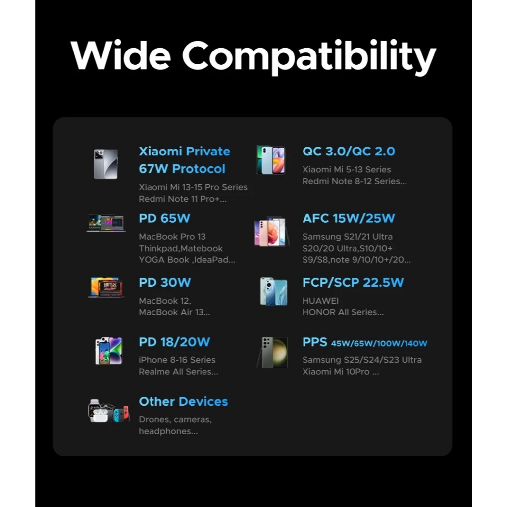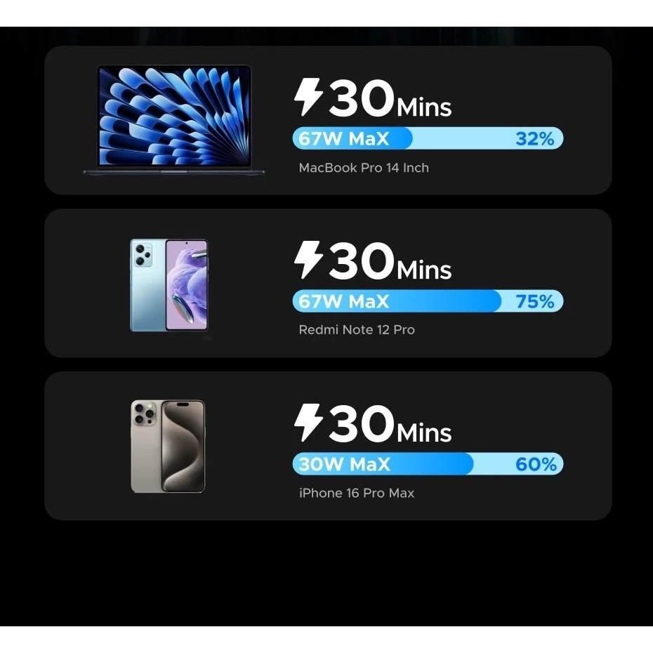 UGREEN Powerbank 20000mAh 67W Built-in Cable USB Type C PD SFC Super Fast Charging