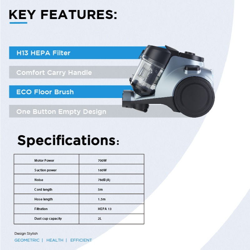 MIDEA MVC-15K Vacuum Cleaner Bagless 700W | Penyedot Debu Tanpa Kantong 2L | Kabel Panjang 5M + HEPA Filter – Praktis &