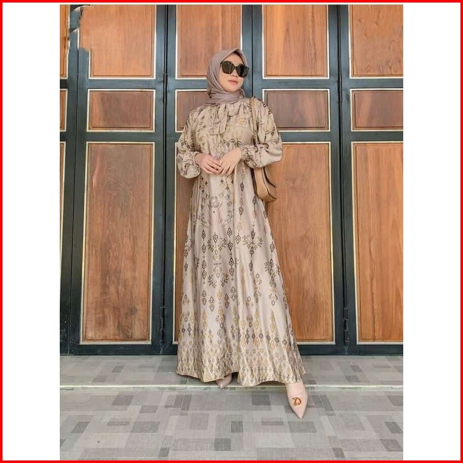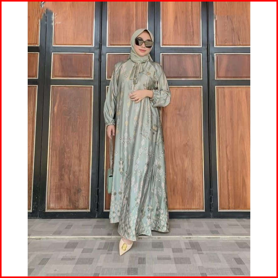 Dress Gamis Wanita Gamis Pesta Mewah Elegan Motif Bunga Bunga Gamis Silky Premium Gamis Lebaran 2025