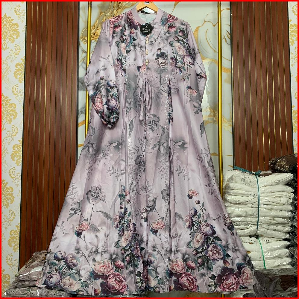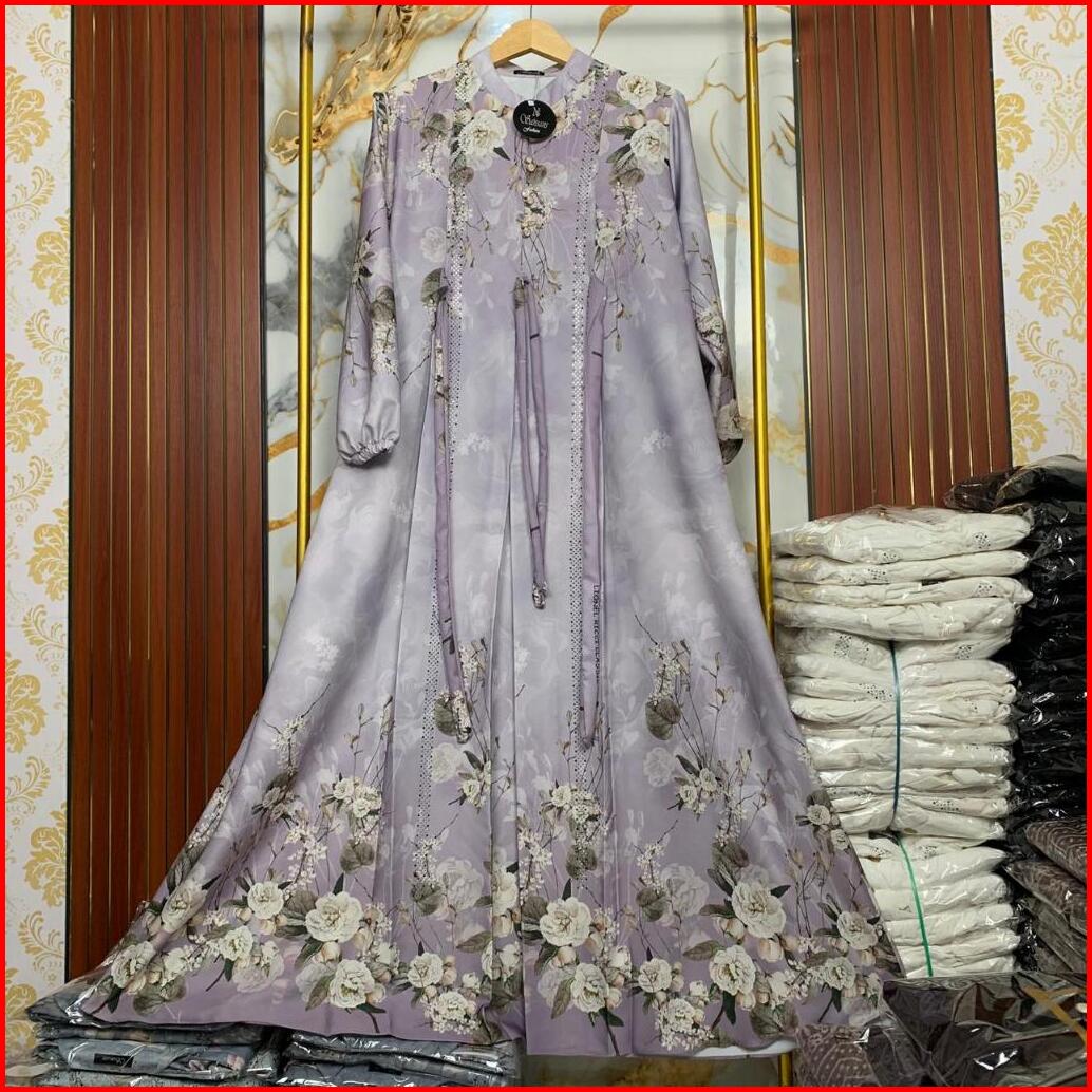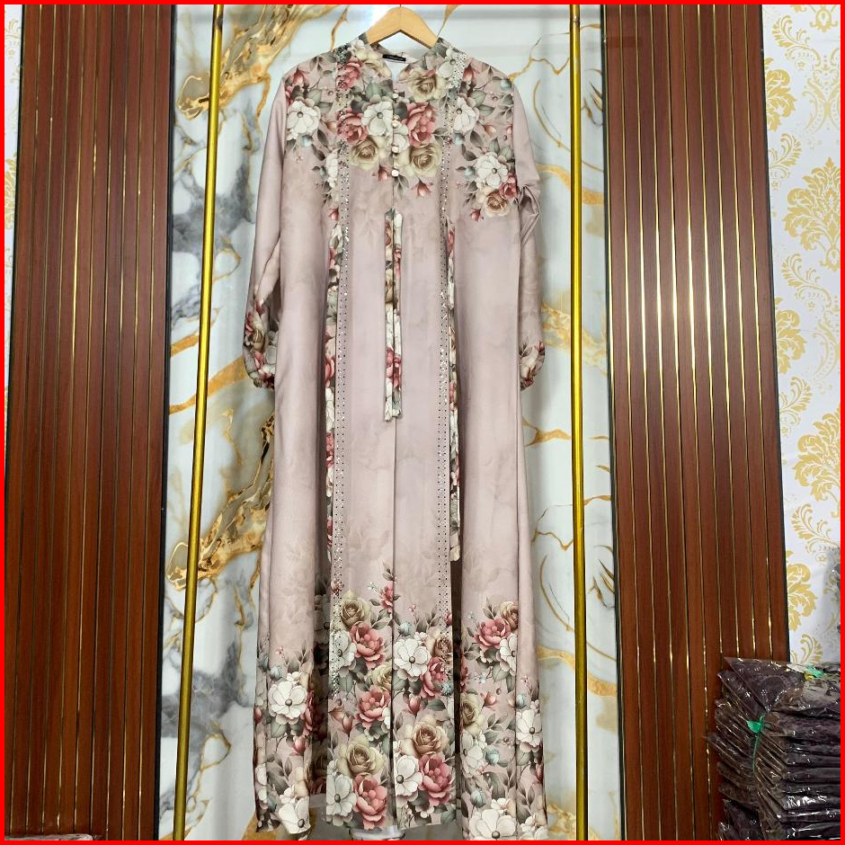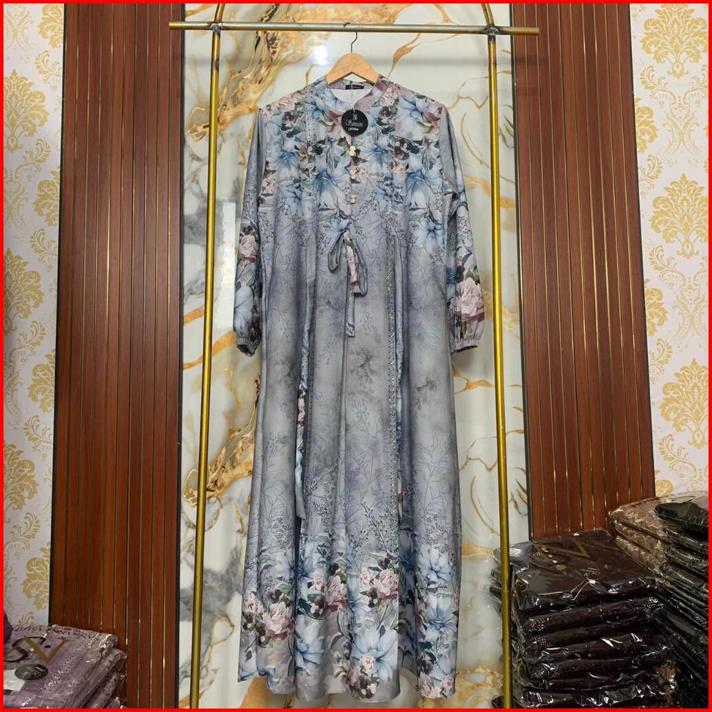 Ns Tifani Dress Gamis Motif Bunga Kancing Mutiara Pesta Kondangan Mewah