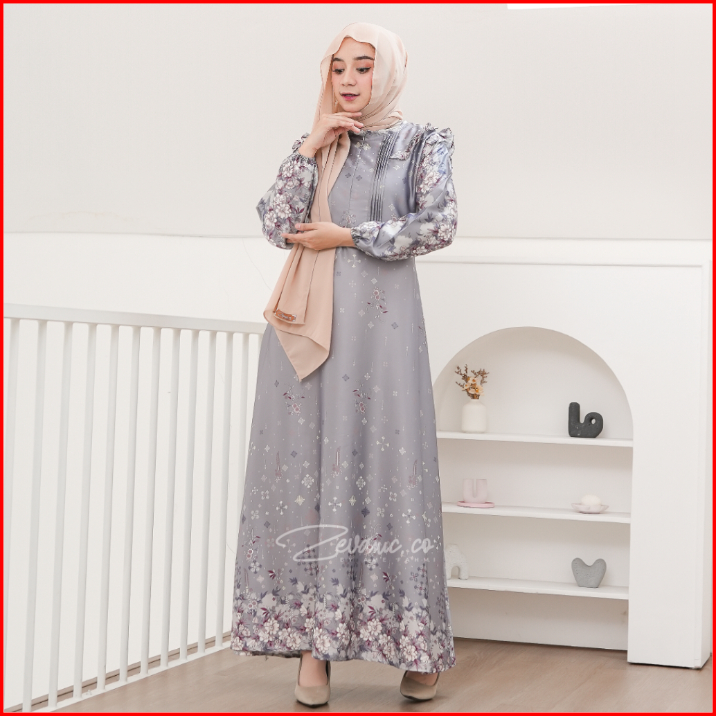 Zevanic.co - Eleya Dress Elegan Gamis Lebaran Pesta Muslim Premium Motif Floral
