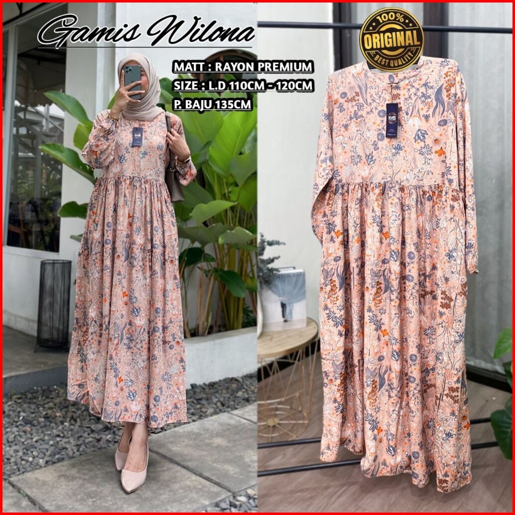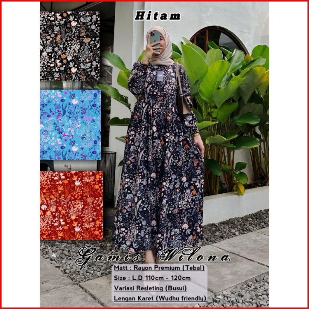 Gamis Midi Dress Rayon Motif Bunga Bahan Rayon Premium - Ld 110cm - 120cm - Pb 135cm Busui Friendly