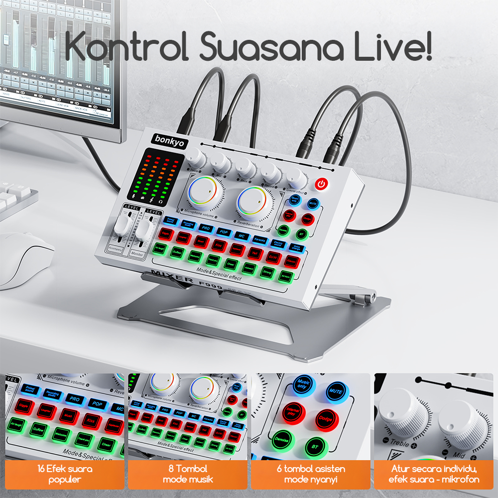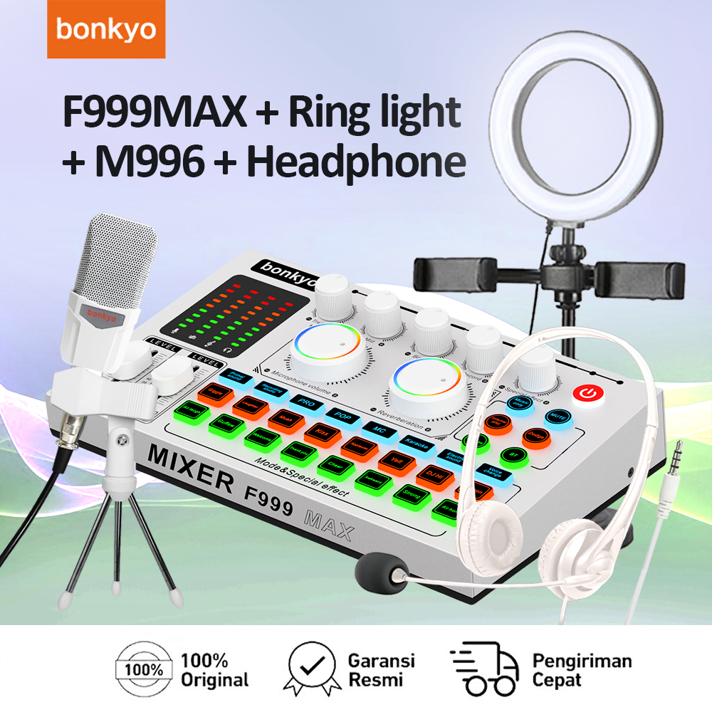 [Star] ORIGINAL Bonkyo F999MAX soundcard +M996 microphone +earphone + fill light broadcast fullset soundcard audio live