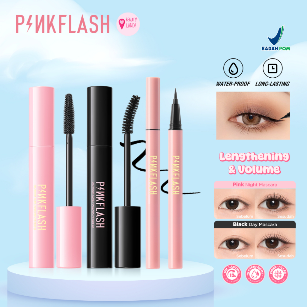 BUNDLING PINKFLASH Long lasting Waterproof Eyeliner & Mascara Eyes set #OhMyLine Makeup Set Bundling Makeup Paket Kecant