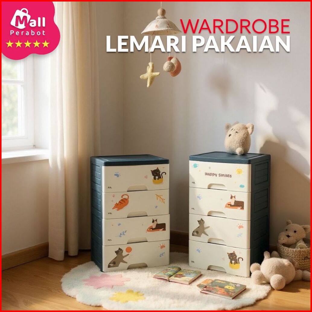 Mall Perabot Lokal Lemari Pakaian Laci Susun Wardrobe Plastik Persegi Kabinet Drawer Storage Rak Loker Baju Tingkat Jumb