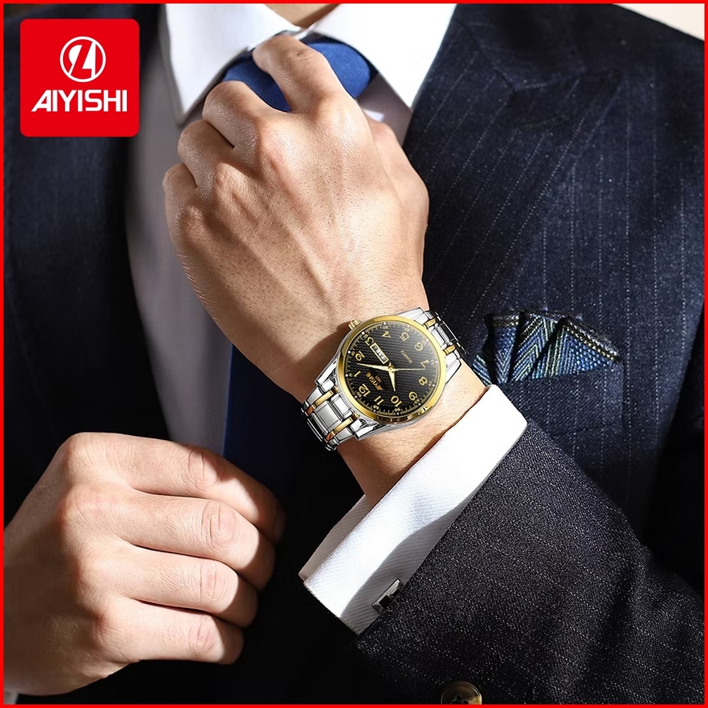 Aiyishi Jam Tangan Pria Anti Air Original 100 Terbaru Mewah Stainless Steel Analog Men Watch
