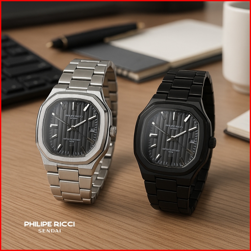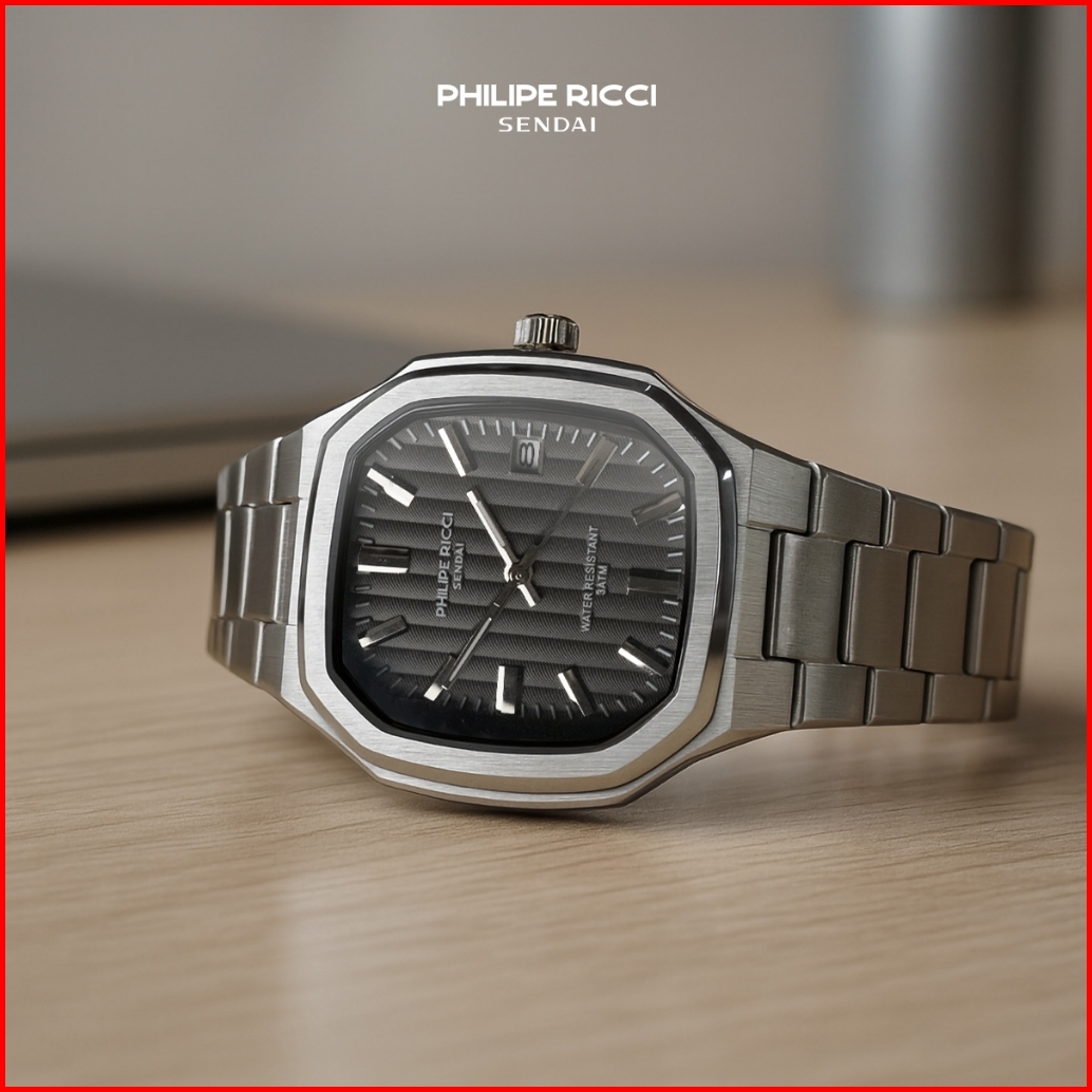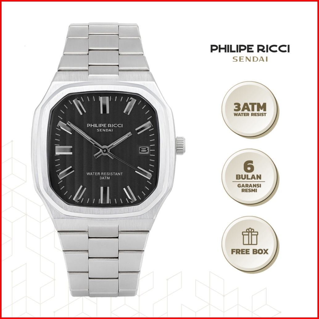 Philipe Ricci Sendai Jam Tangan Pria Rantai Stainless Steel Simple Terbaru Keren 6339 Men Watches