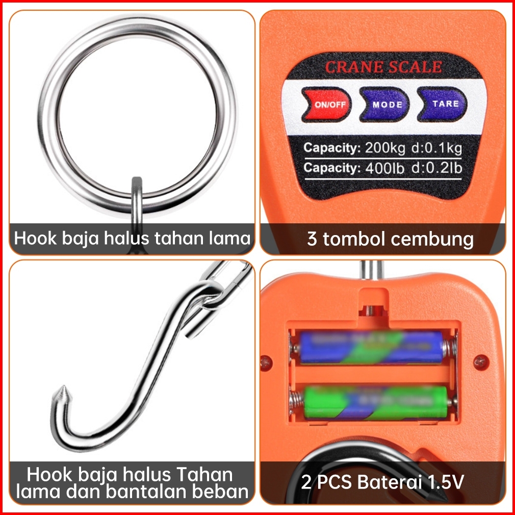 Mini Presisi Tinggi Timbangan Gantung Digital 200kg Timbangan Gantung Digital Layar Led Definisi Tinggi