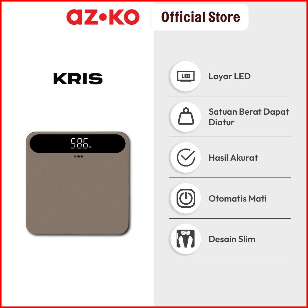Azko Kris Timbangan Badan Digital Precision - Cokelat Body Weight Scale Alat Pengukur Berat Badan Penghitung Berat Tubuh
