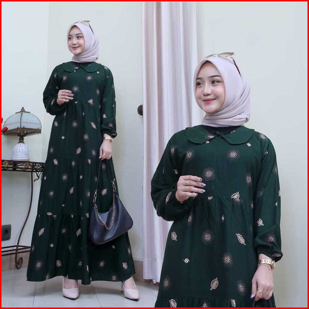 Gamis Rayon Motif Bunga Daun Gamis Rayon Susun Rempel Wanita Gamis Remaja Gamis Wanita