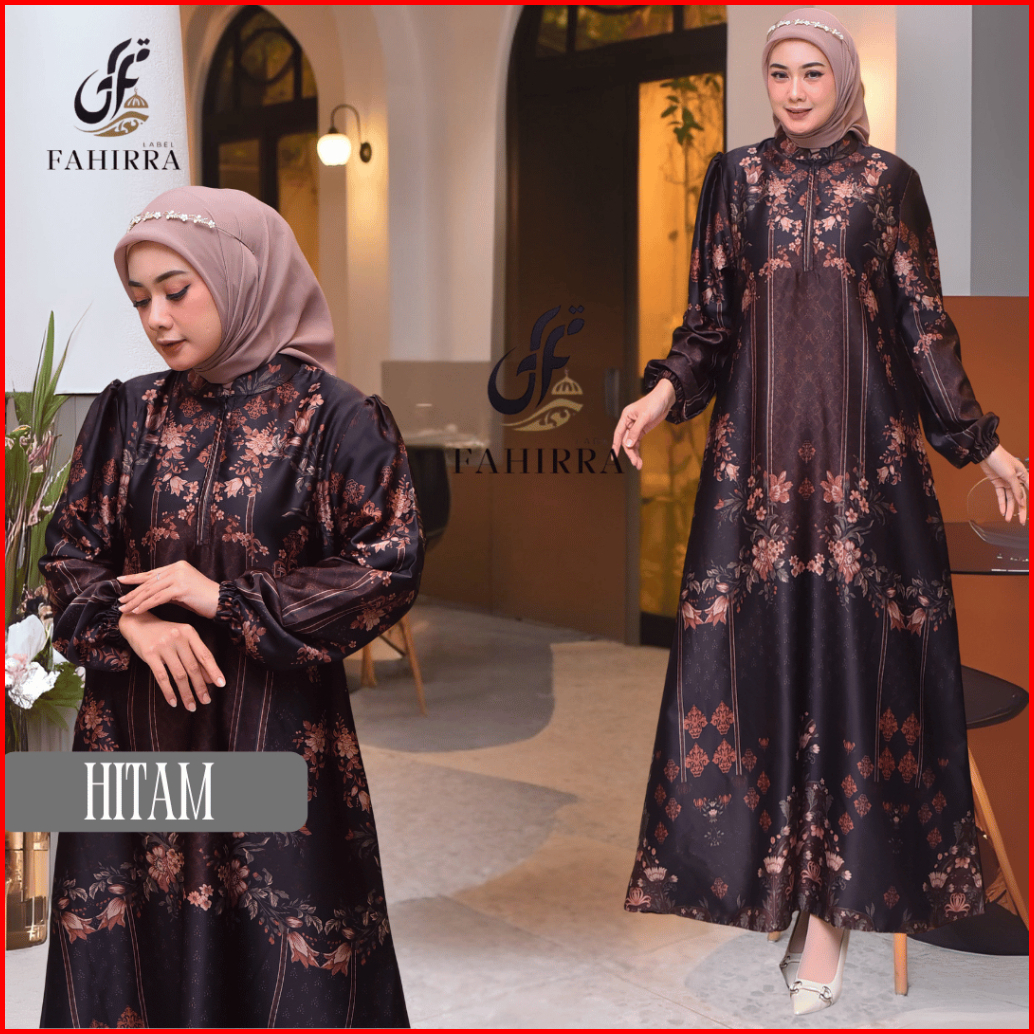 Dress Lyana Bahan Silk Premium Gamis Kondangan Lengan Balon Busui Motif Bunga Elegan Terlaris 2025