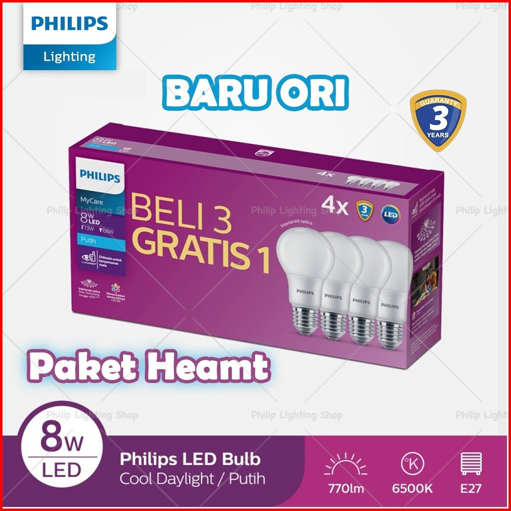 Beli 3 Gratis 1 Lampu Philips Led 8w 4pcs -philips Ledbulb 6w 8w 10w 12w 14.5watt Multipack Lampu Led Rumah Philips Mult