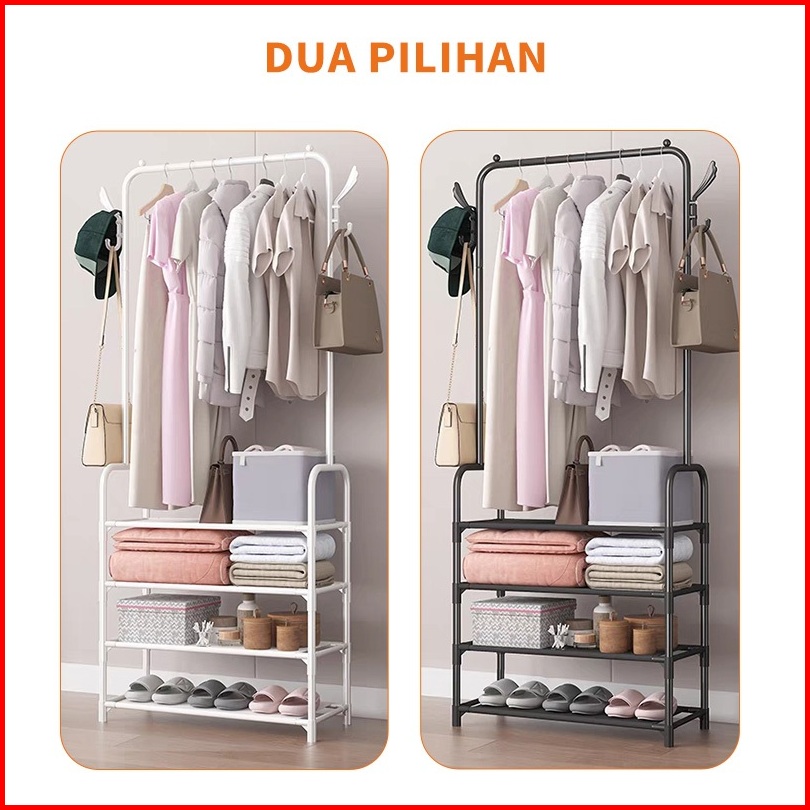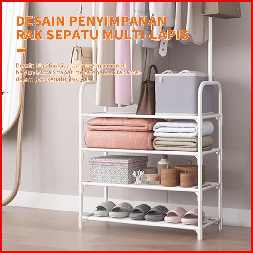 Yonezawa Rak Gantung Baju Stand Hanger Serbaguna Rak Jemuran Pakaian Portable Rak Sepatu 3 Susun Rak Susun Rak Penyimpan