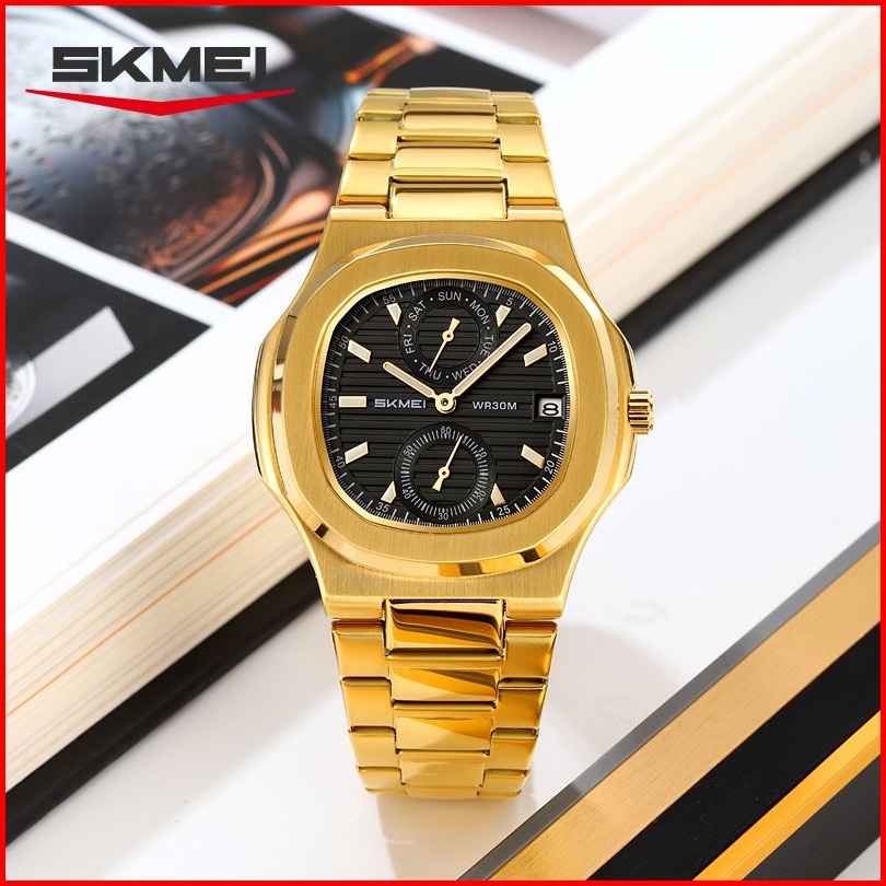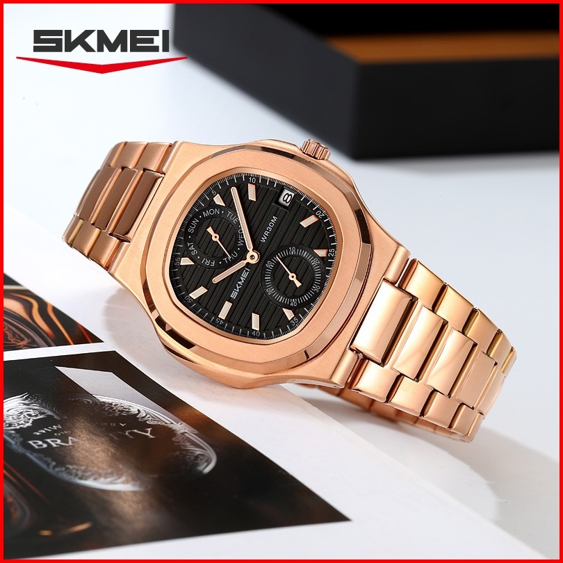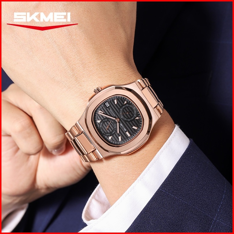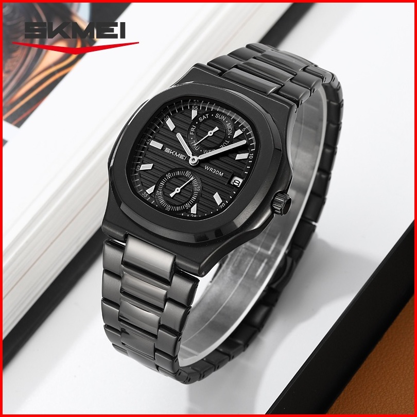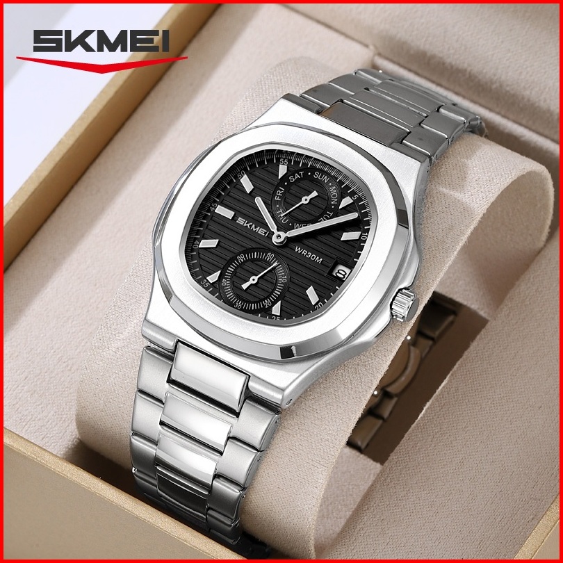 Skmei 2423 Jam Tangan Pria Analog Chronograph Tali Stainless Steel Mgos