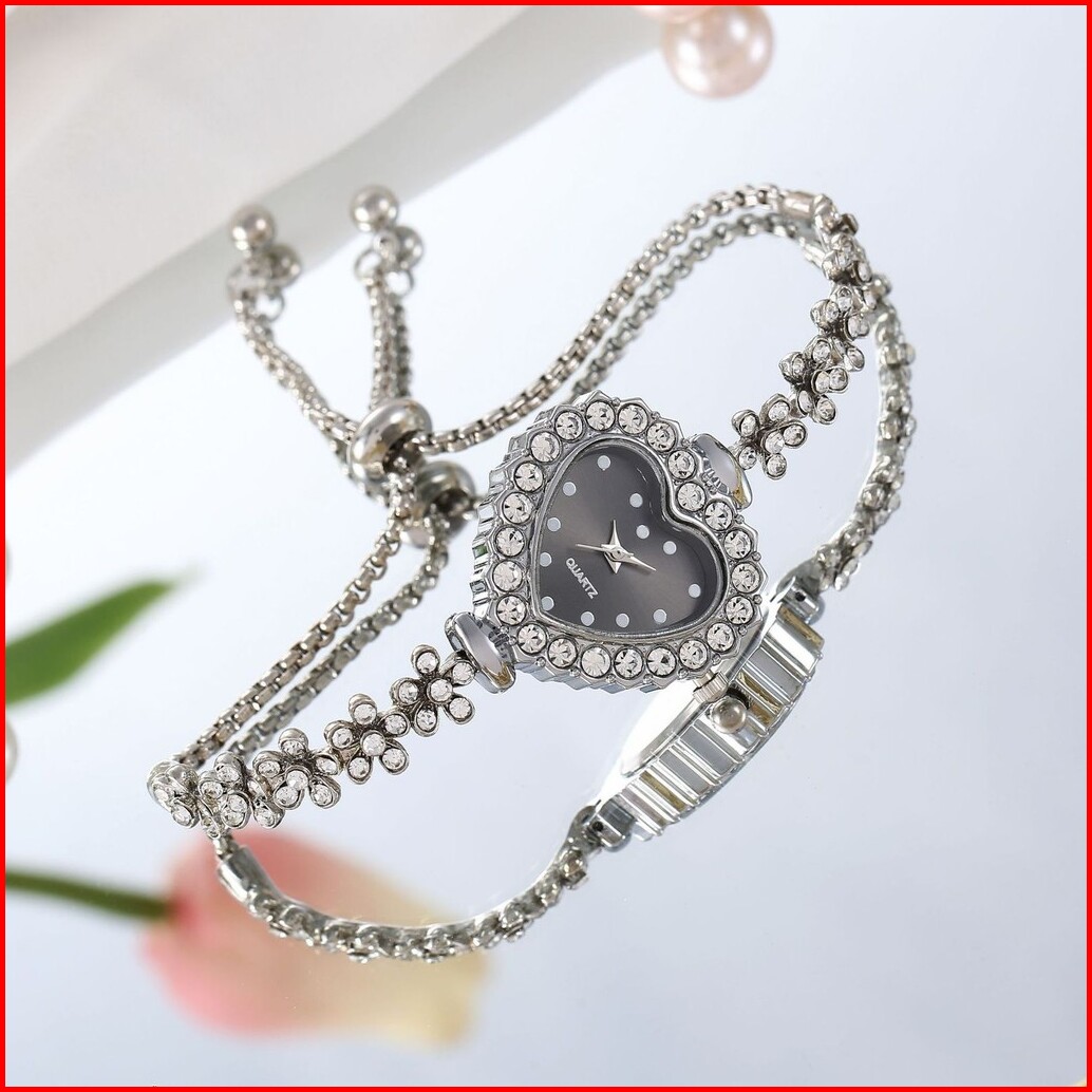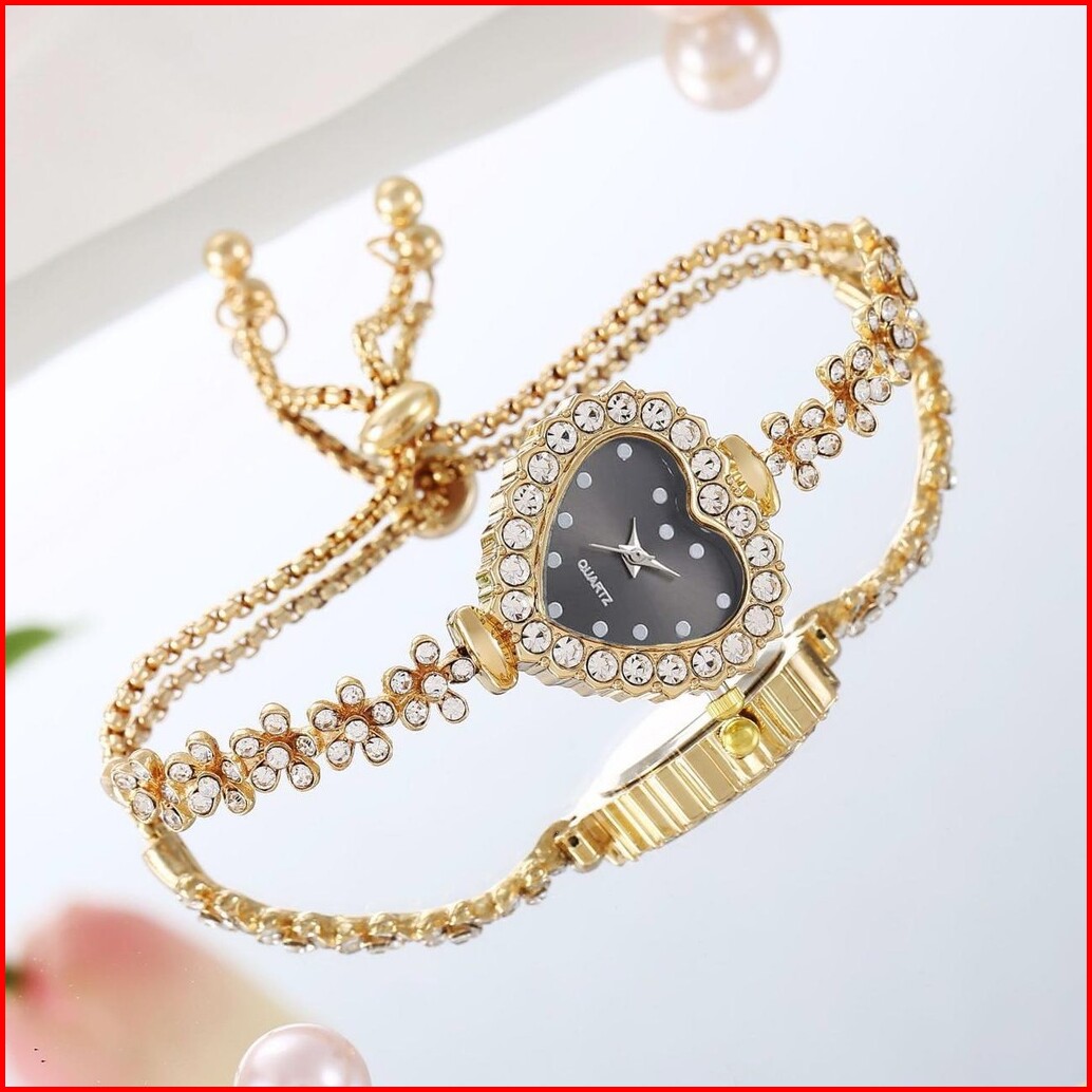 Wbs Jam Tangan Serut Mewah Gelang Serut Wanita Analog Quartz Adjustable Anti Air Rantai Stainless Steel Diamond Fashion