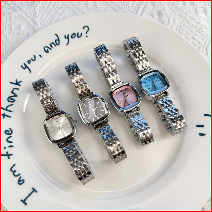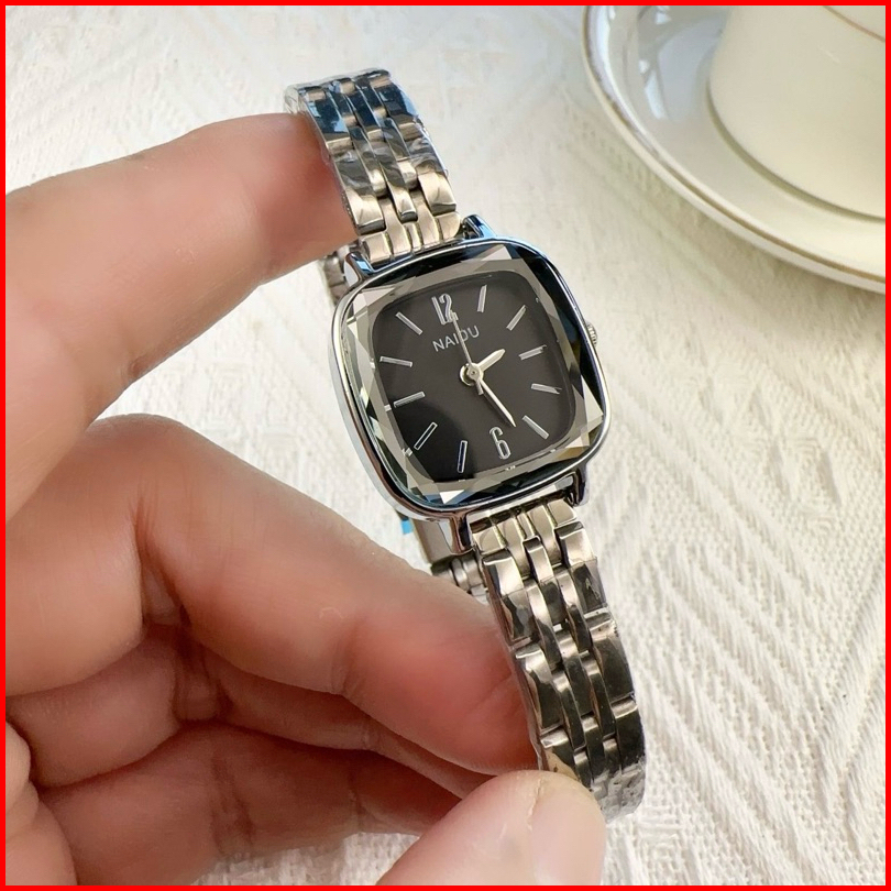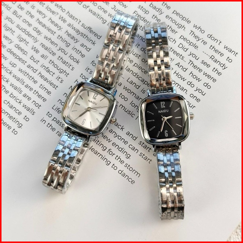 Jam Tangan Wanita Naidu Model Segi Tali Rantai Besi Stainless Steel Mewah Elegan Ca168