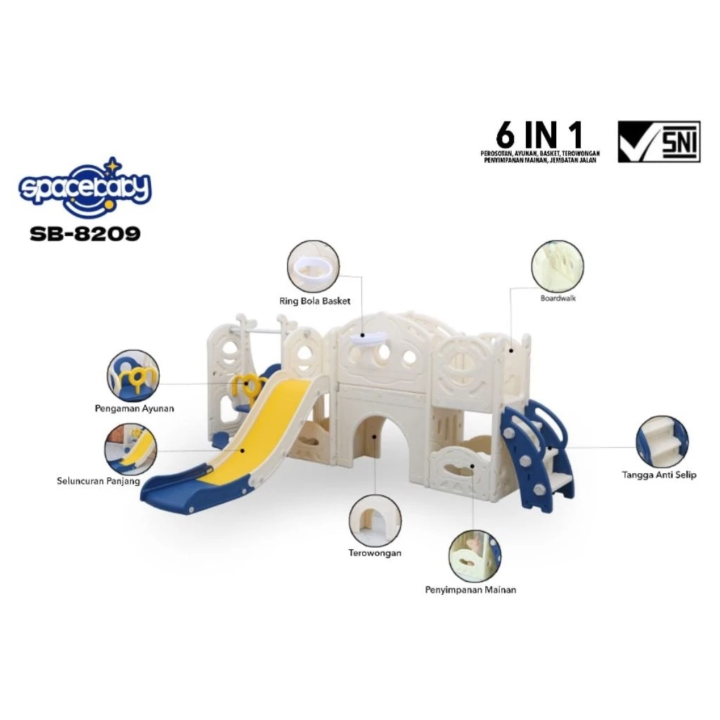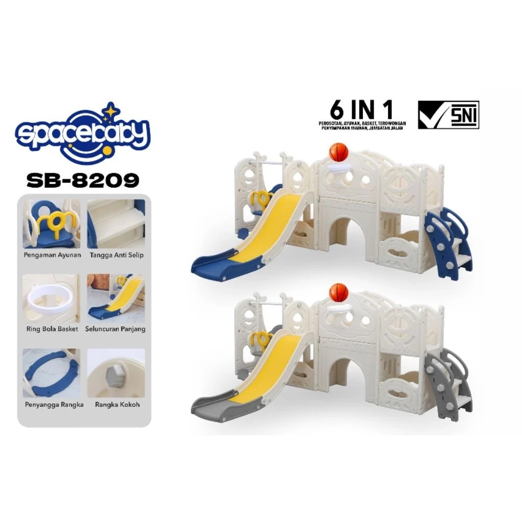 Spacebaby SB 8209 Perosotan Ayunan Anak Fun Slide Swing 6in1 Mainan Anak Indoor Lengkap