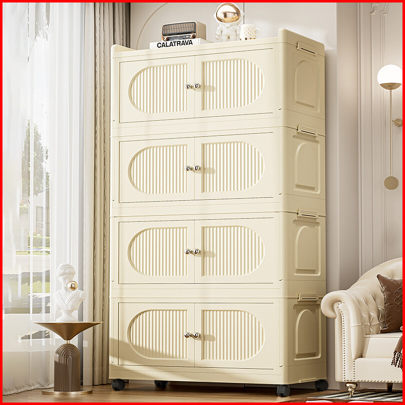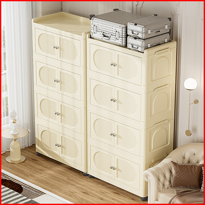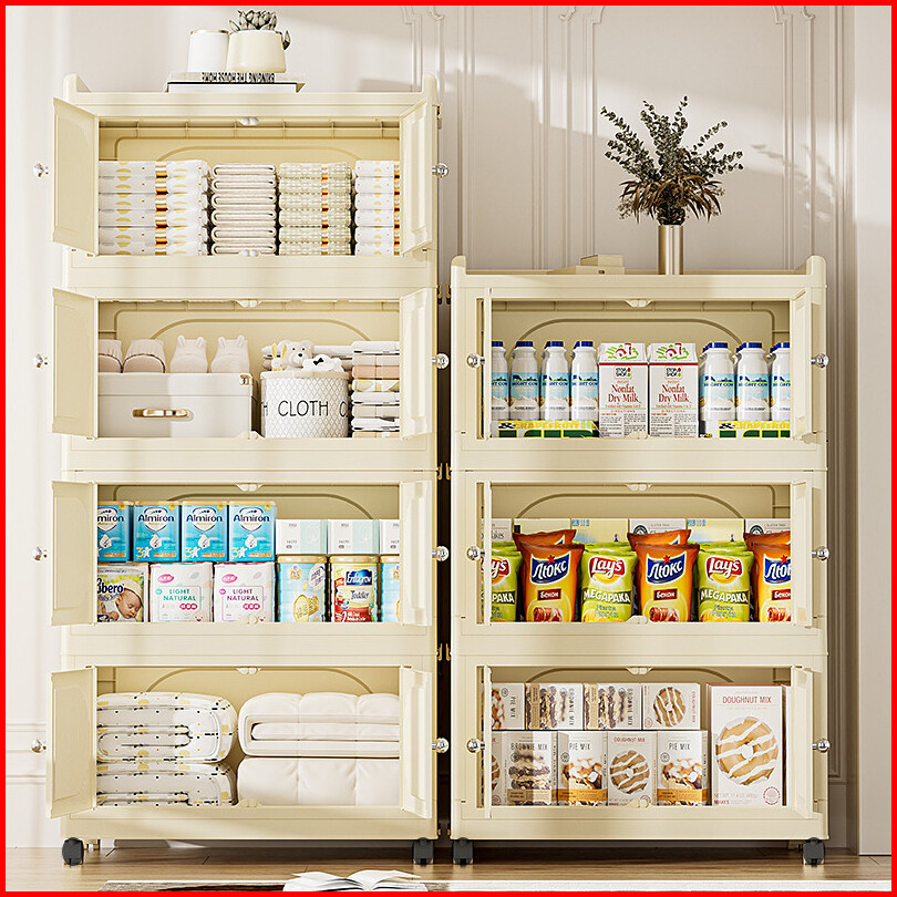 Lemari Plastik Serbaguna Laci Susun 4 Tingkat Rak Penyimpanan Lipat Roda Lemari Baju Anak Dapur Minimalis