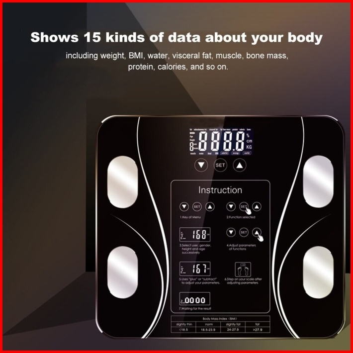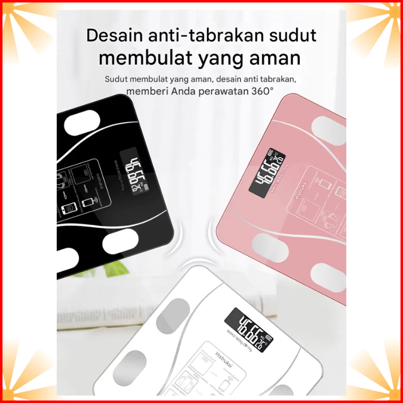 Fya Timbangan Badan Hitam Warna Digital Bluetooth Tempered Glass Smart Body Fat Scale