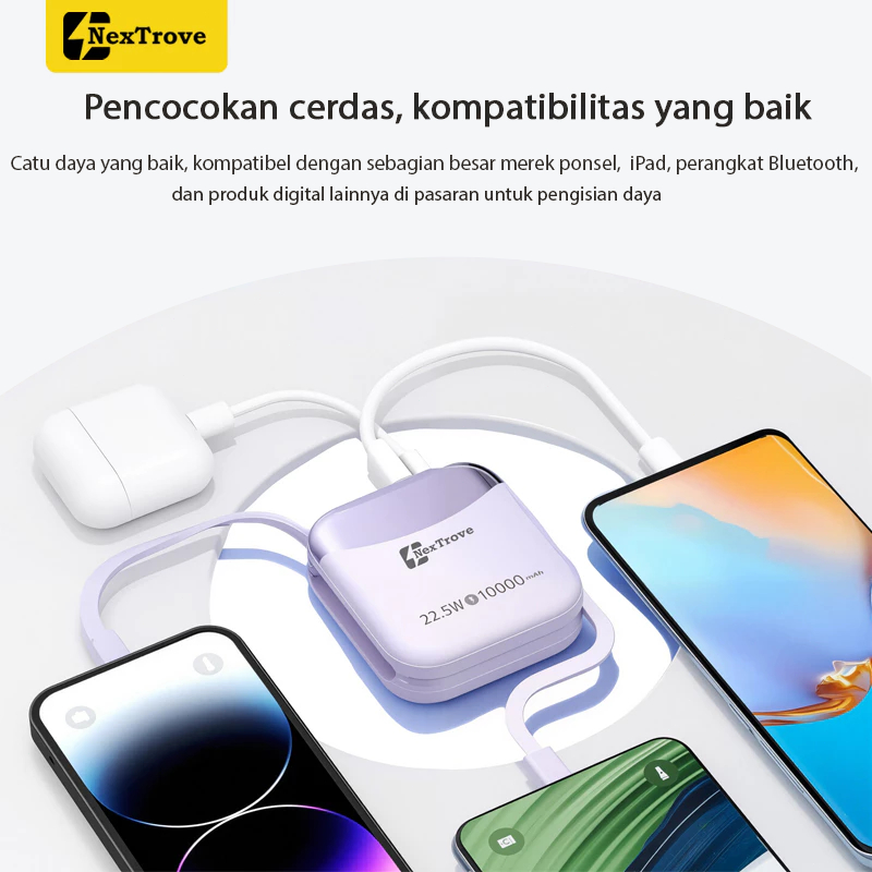 NexTrove Mini Power Bank 10000mAh Built in Cable (Lightning & Type C) 22.5W Fast Charging Powerbank For iP & Android - LED Display