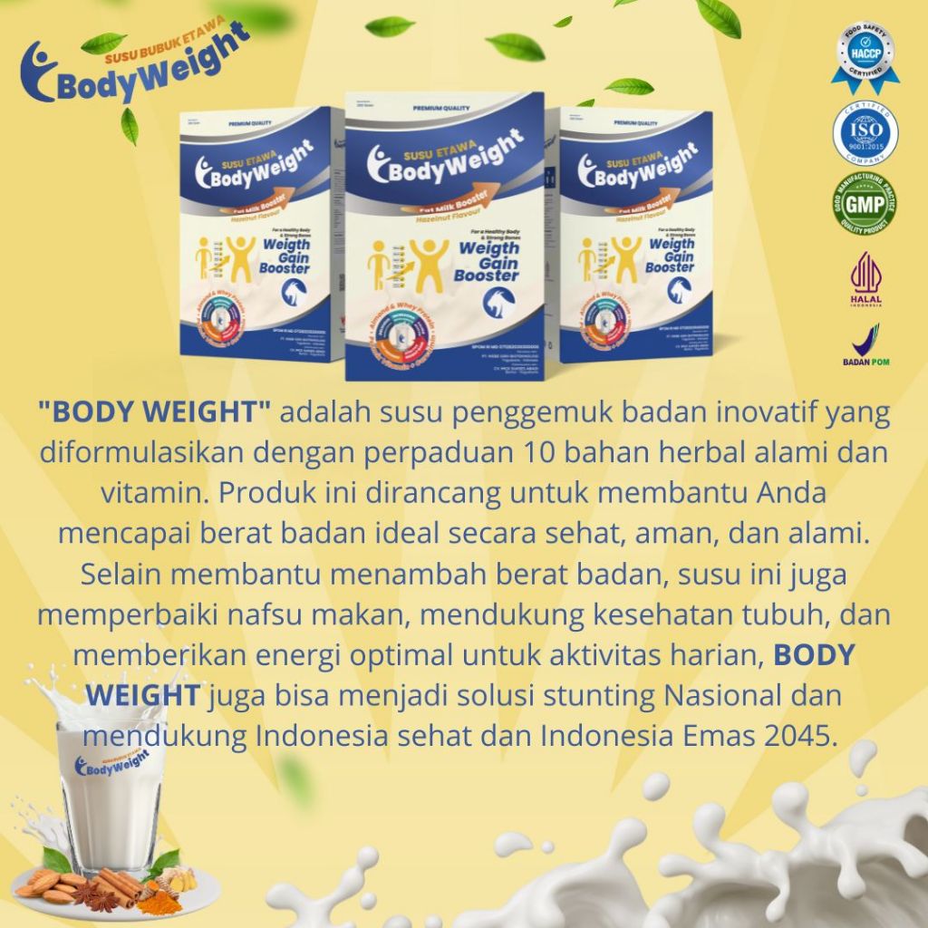 BodyWeight Susu Kambing Etawa Penggemuk Badan Susu Etawa Membantu Meningkatkan Nafsu Makan dan Masa Otot Kkuningan mengkilapan 250gr Paket 2 Box