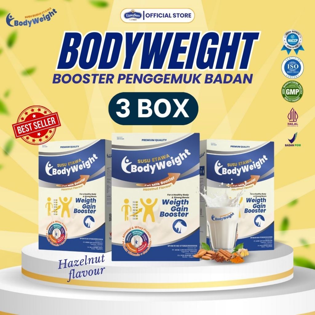 BodyWeight Susu Etawa Penggemuk Badan Susu Kambing Etawa Membantu Meningkatkan Nafsu Makan dan Masa Otot Kkuningan mengkilapan 250gr Paket 3 Box