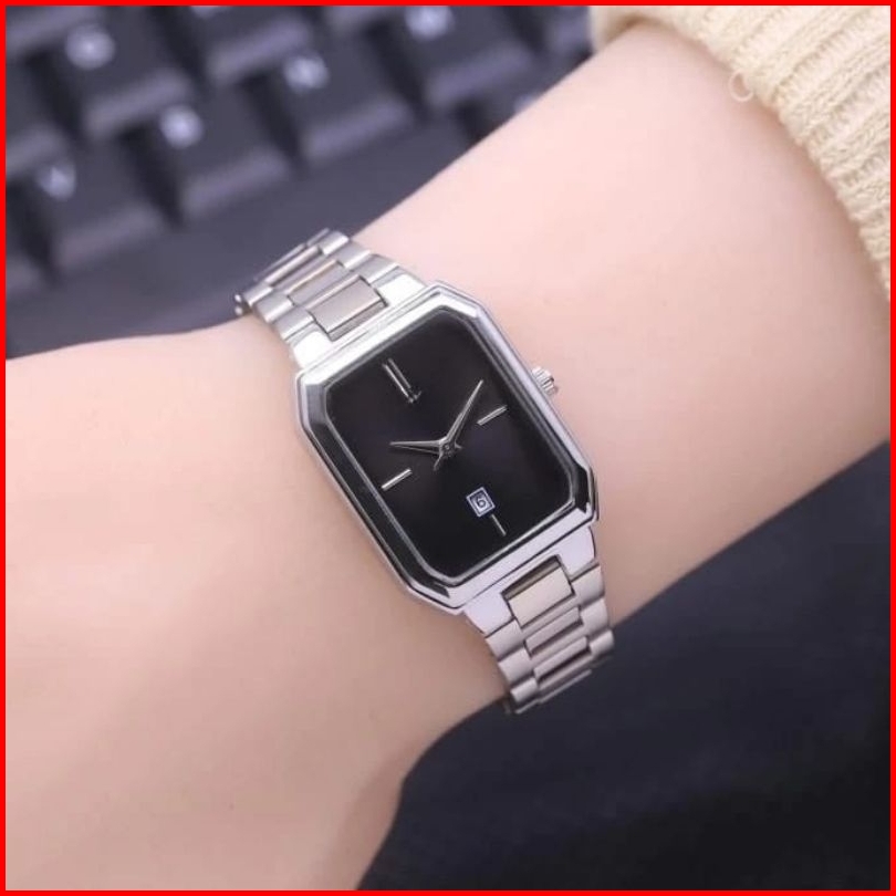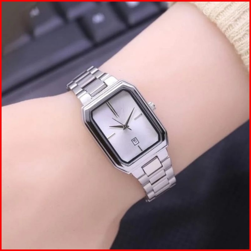 Jam Tangan Rantai Wanita Persegi Ada Tanggalnya Aktif Mewah Kekinian Elegan Stainless Steel Terbaru
