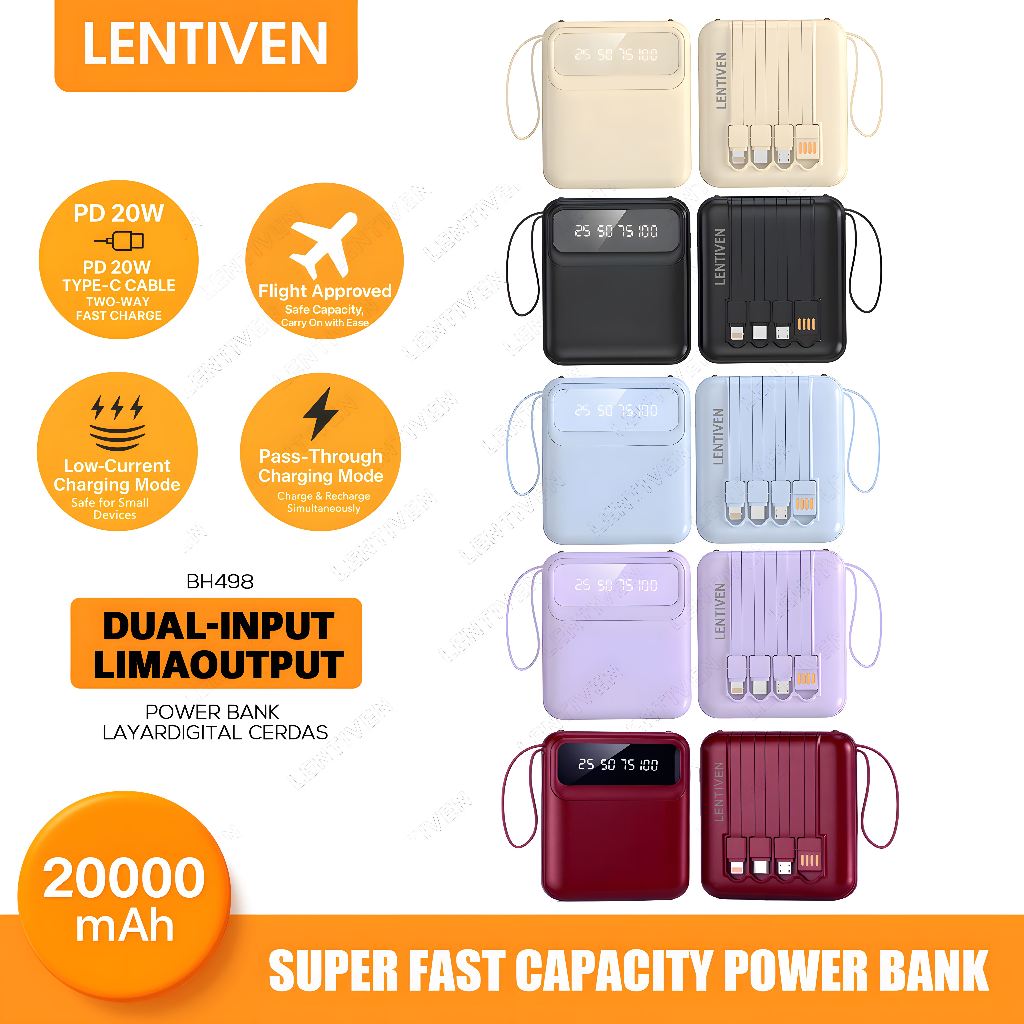 LENTIVEN Powerbank 20000mAh MINI Fast Charging 4 Kabel Data USB BH498