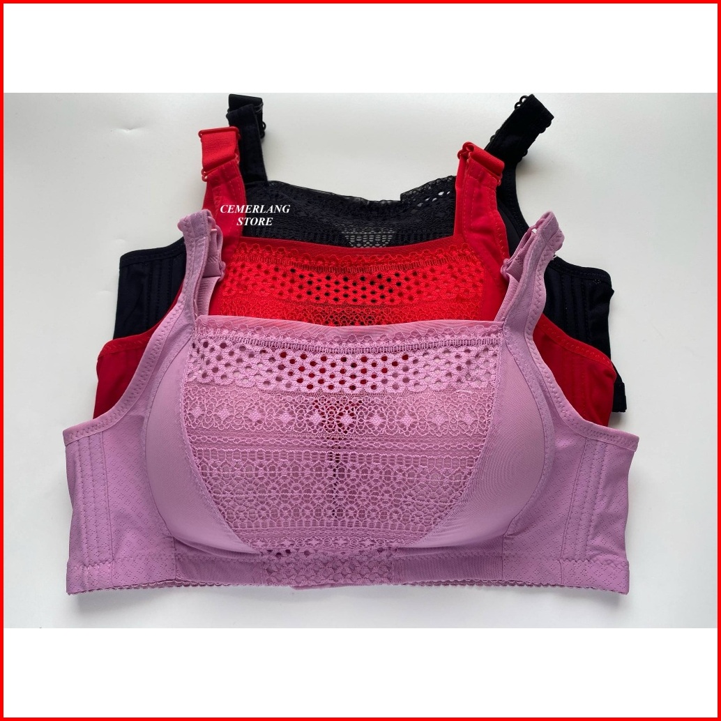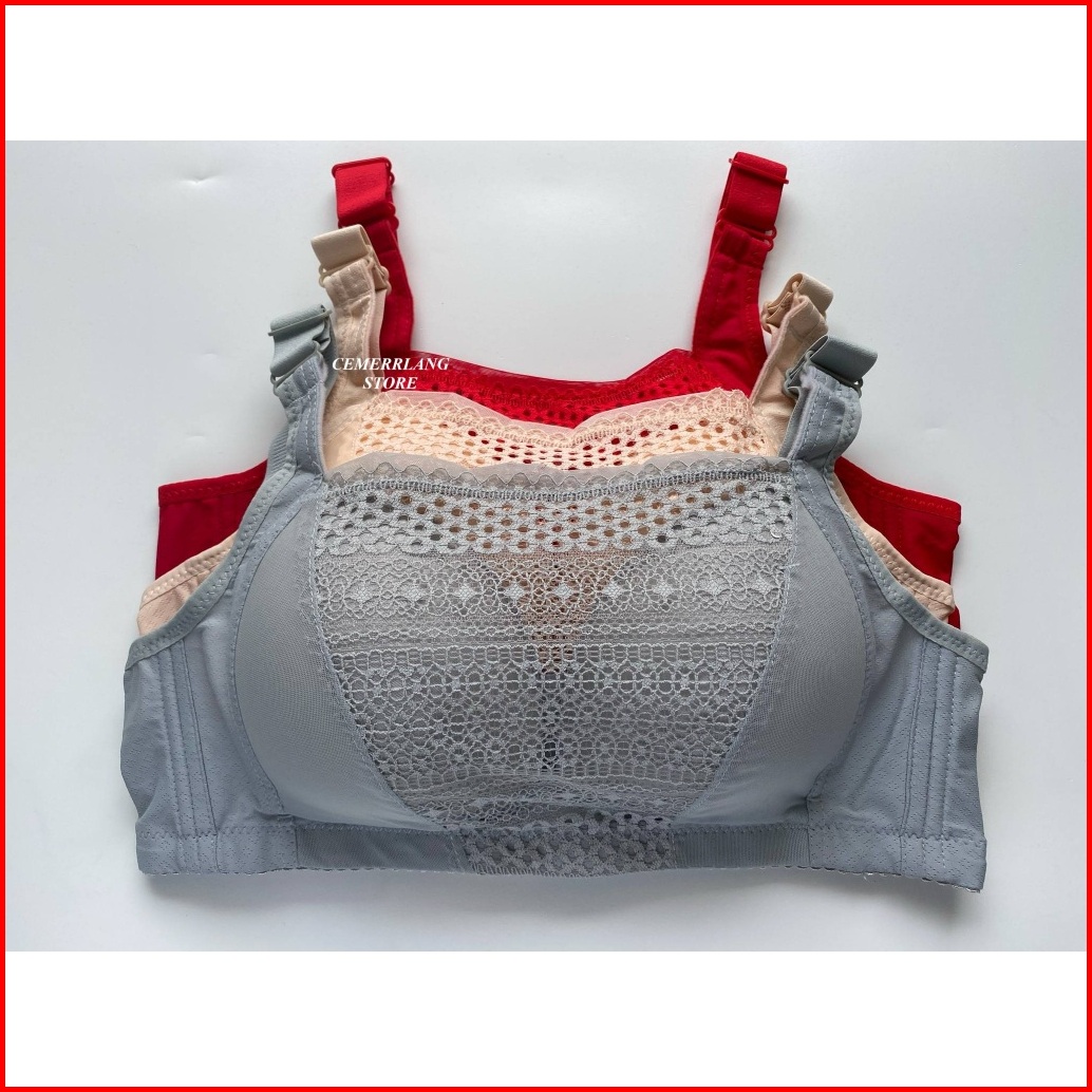 3 Pcs Bh Bra Kemben Busa Tanpa Kawat Cup Besar Renda Jaring Cantik Kait 4 Size 36 38 40 42 44 46