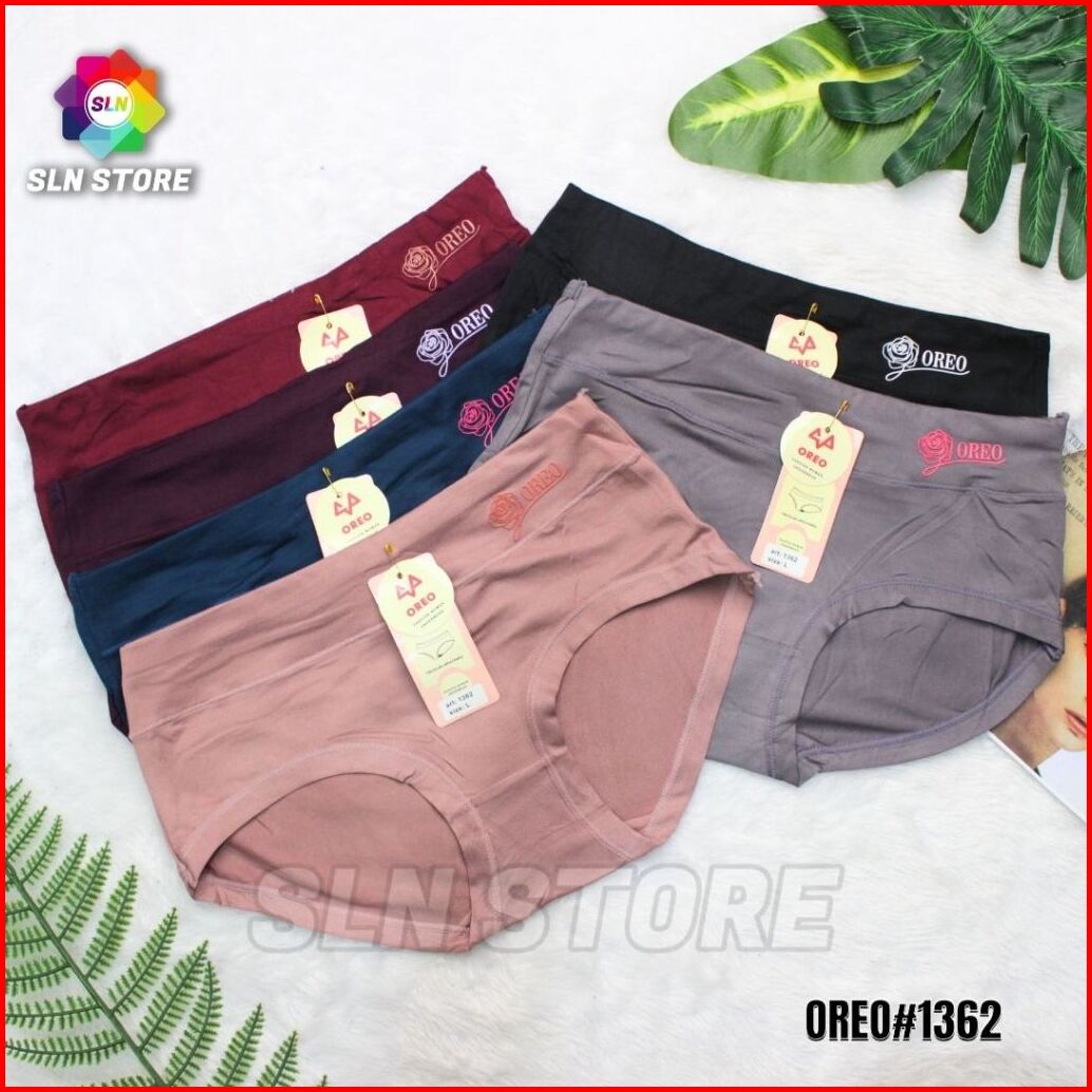 Sln - 12pcs Celana Dalam Wanita Katun Spandek Warna Gelap - Or 1362