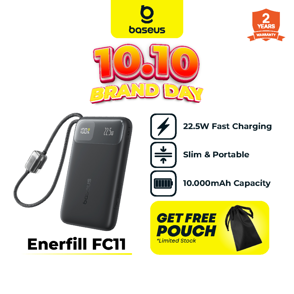 [NEW PRODUCT] Baseus EnerFill FC11 10000mAh 22.5W Fast Charging PowerBank with Digital Display with Built-in Type-C + Lightning Cables