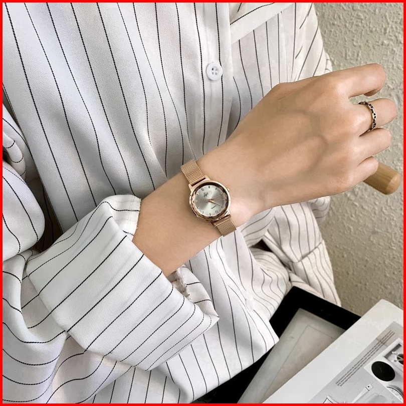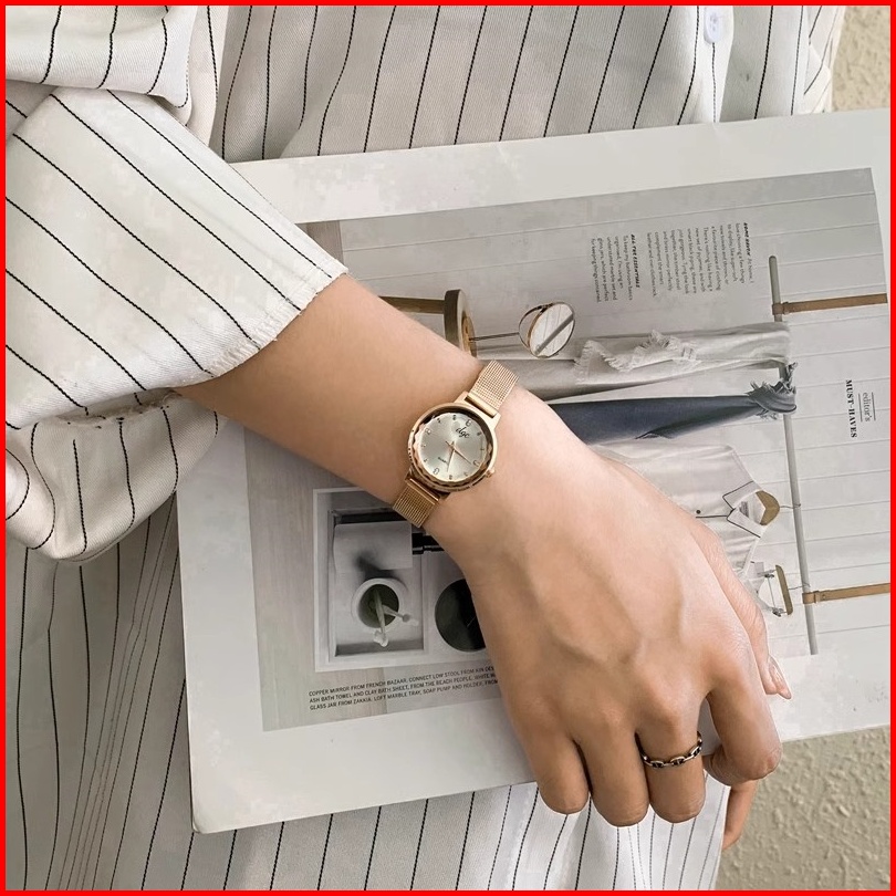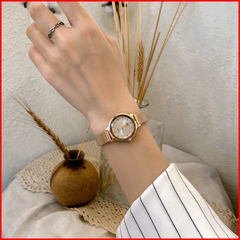 W381 Jam Tangan Wanita Kecil Analog Dial Bulat Strap Rantai Stainless Steel Rose Casual Fashion Wanita Free Baterai