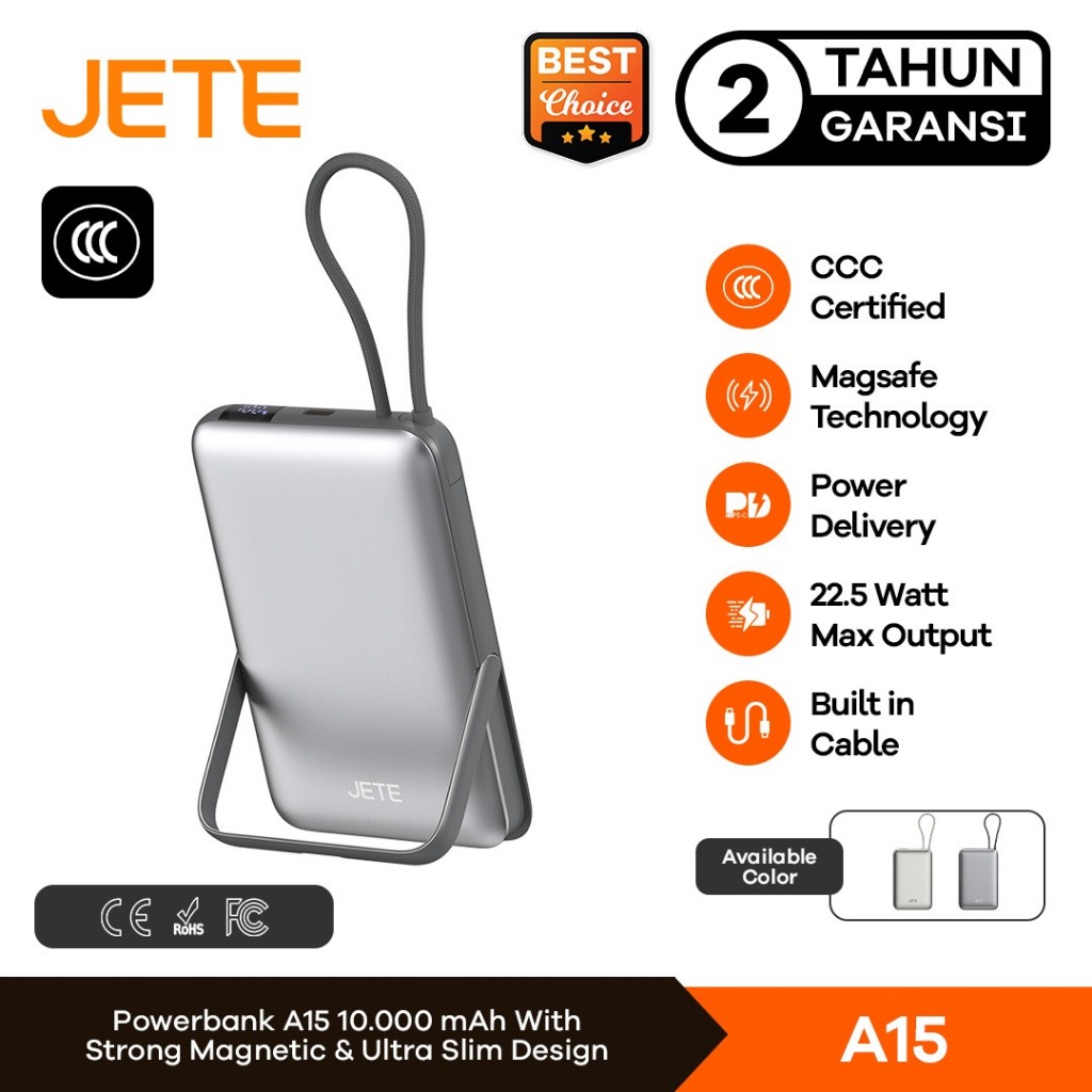 【Sertifikat CCC】JETE A15 Powerbank Wireless Magnetic Magsafe 10000mAh 22.5W Fast Charging Built in Kabel Type C Portable Travel