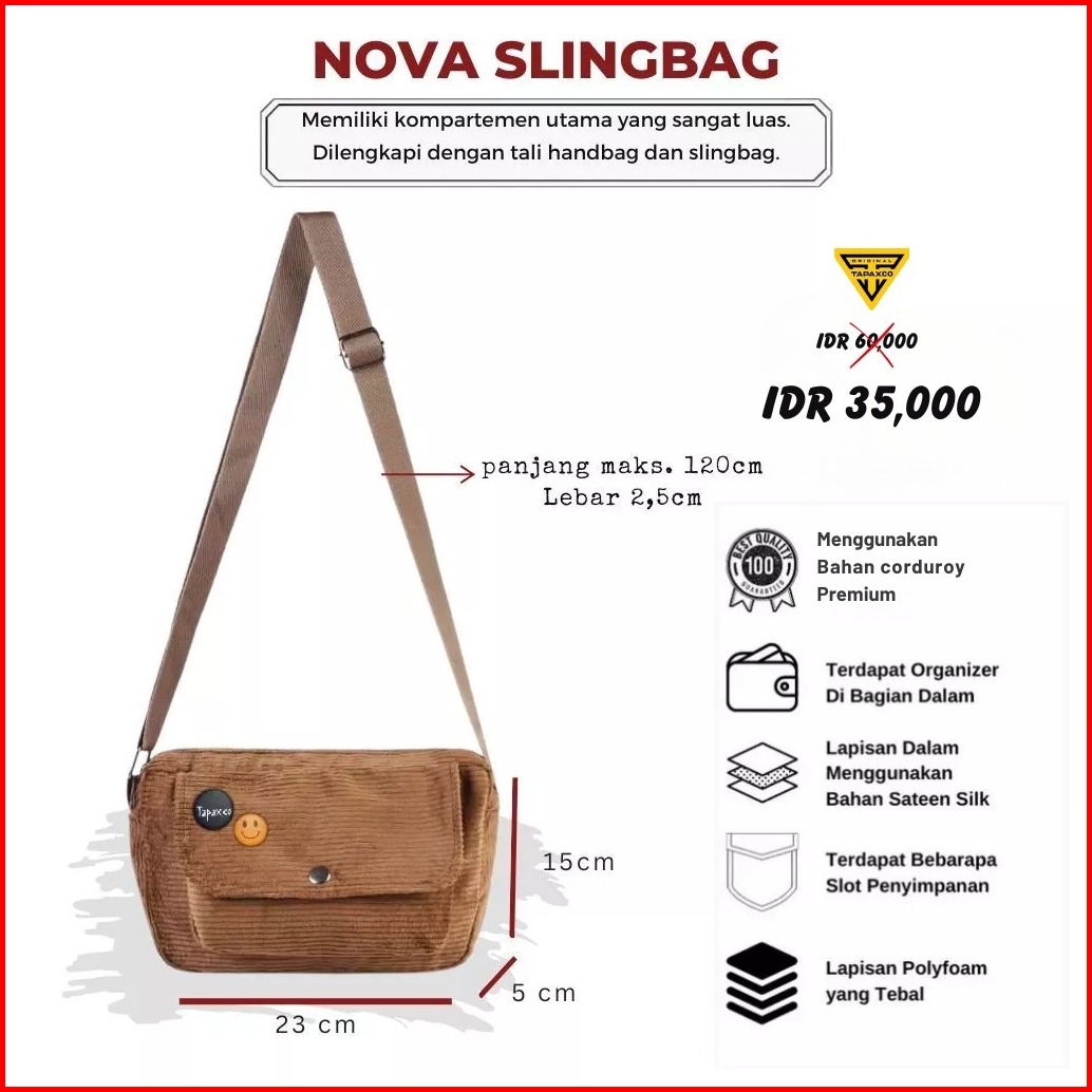 Tas Selempang Nova - Mini Slingbag Uniseks Tas Pria Wanita Corduroy Polos Kobeo I Free 2 Bross
