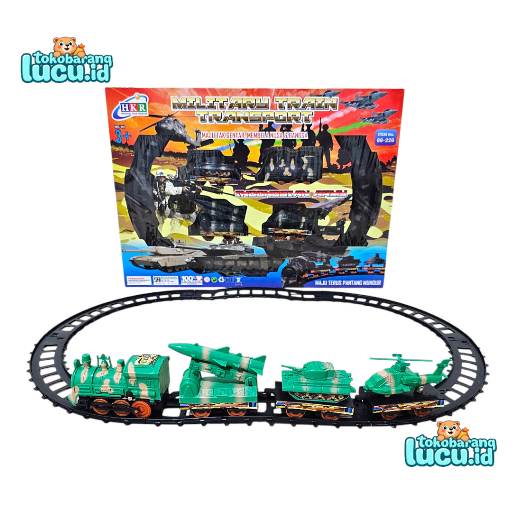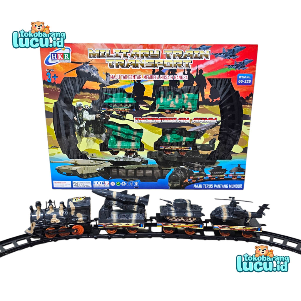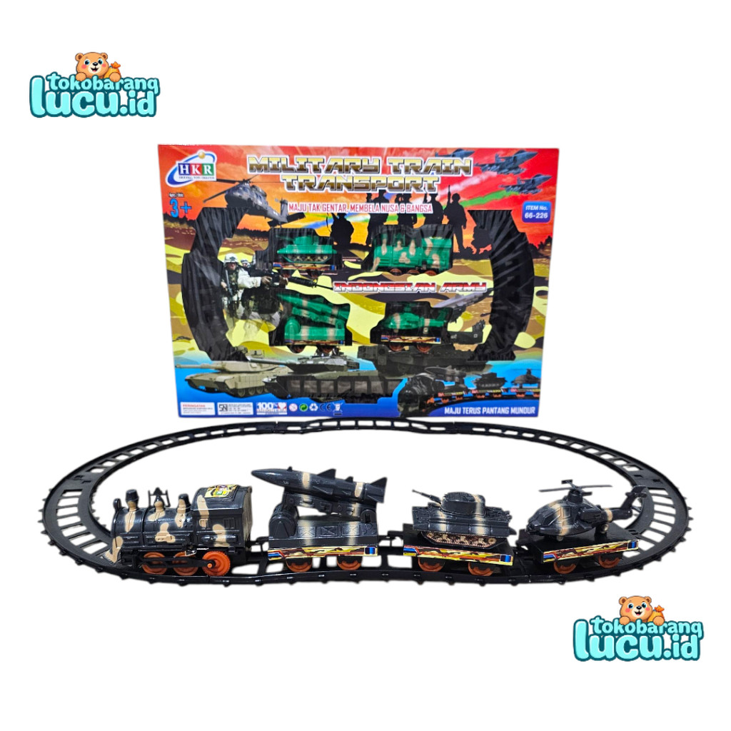 Mainan Kereta Api Militer Indonesia Baterai Rel Panjang Tank Rudal dan Helikopter HKR 66-226