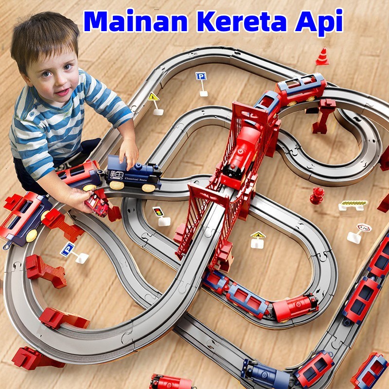 Mainan Anak Kereta Api Dinosaurus /Perakitan DIY Latih Mainan Trek Mobil/Cepat Set Rail Lengkap Mobil Edukasi Anak Rakit