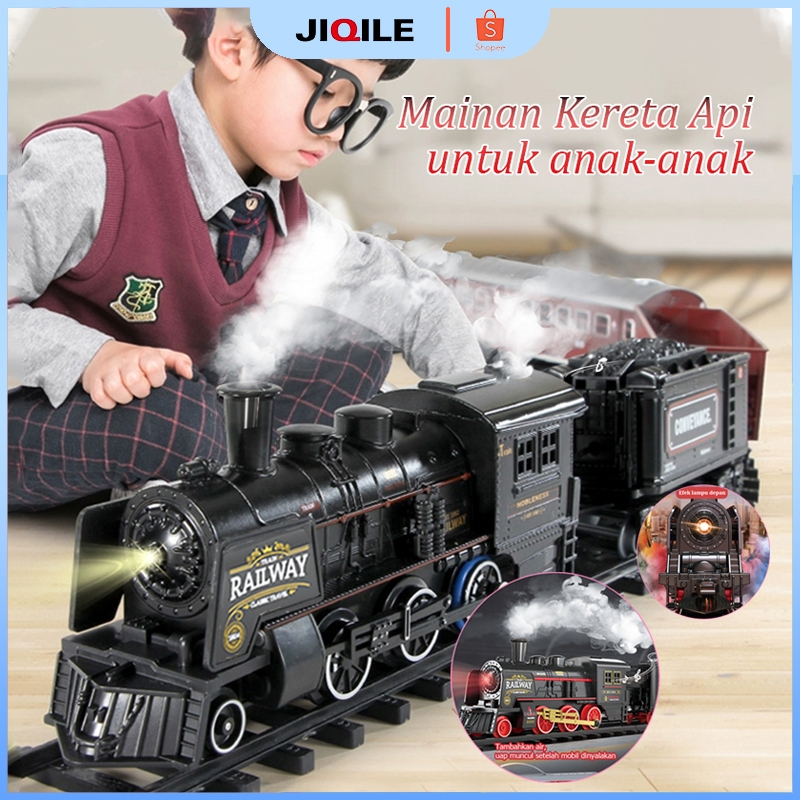 JIQILE Kereta Api Mainan Elektrik Rail King Panjang Kereta Api Uap 6 Gerbong 21 Rel Mainan Anak Laki Laki