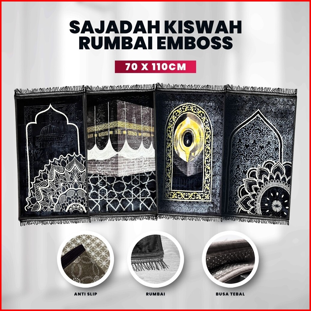 Sajadah Kiswah Rumbai Emboss Motif Kiswah 70 X 110 Sajadah Turki Anti Slip Sejadah Rumbai