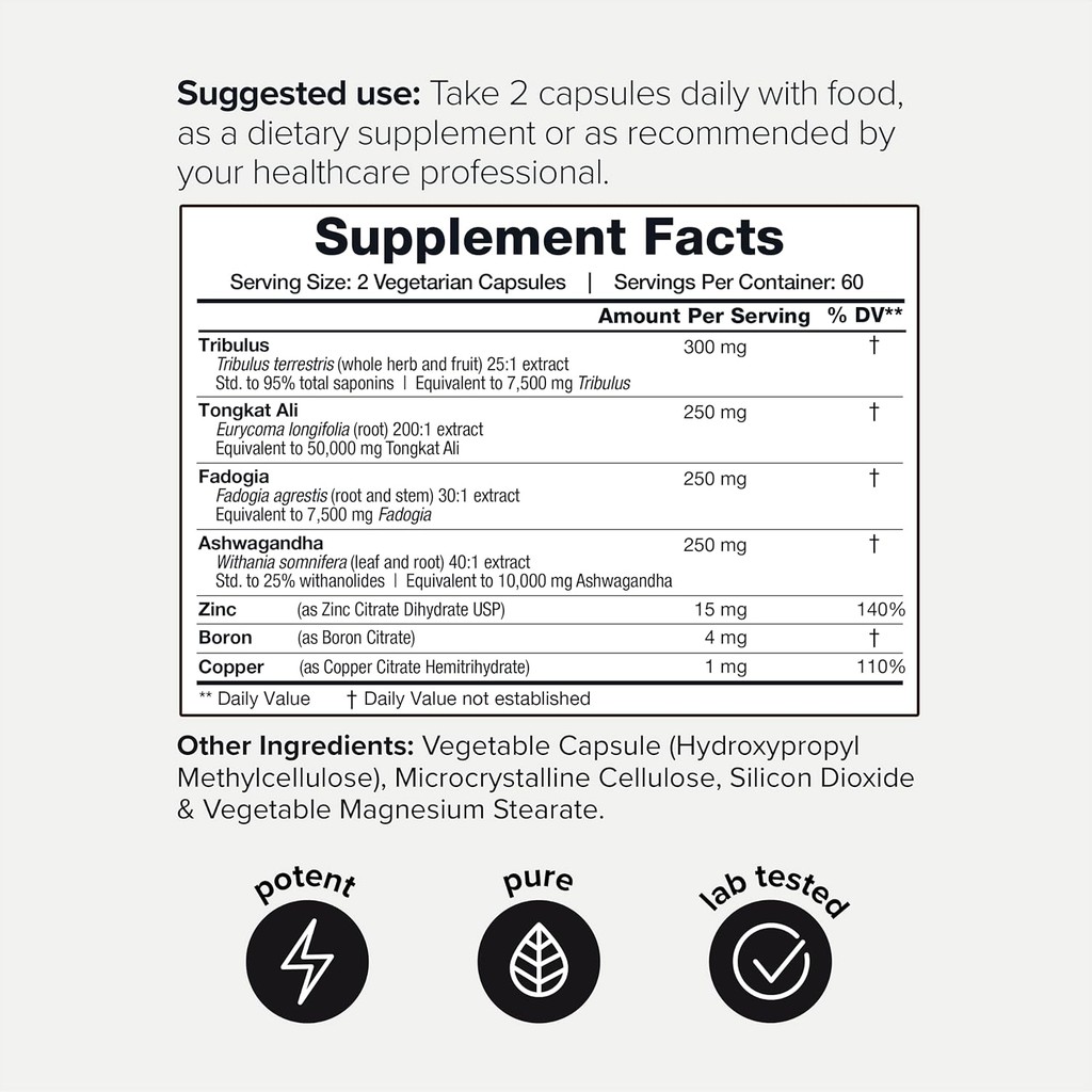 Toniiq Testosterone Support Elite T Formula - 120 Capsules, Tribulus + Tongkat Ali + Fadogia + Ashwagandha + Zinc + Boro