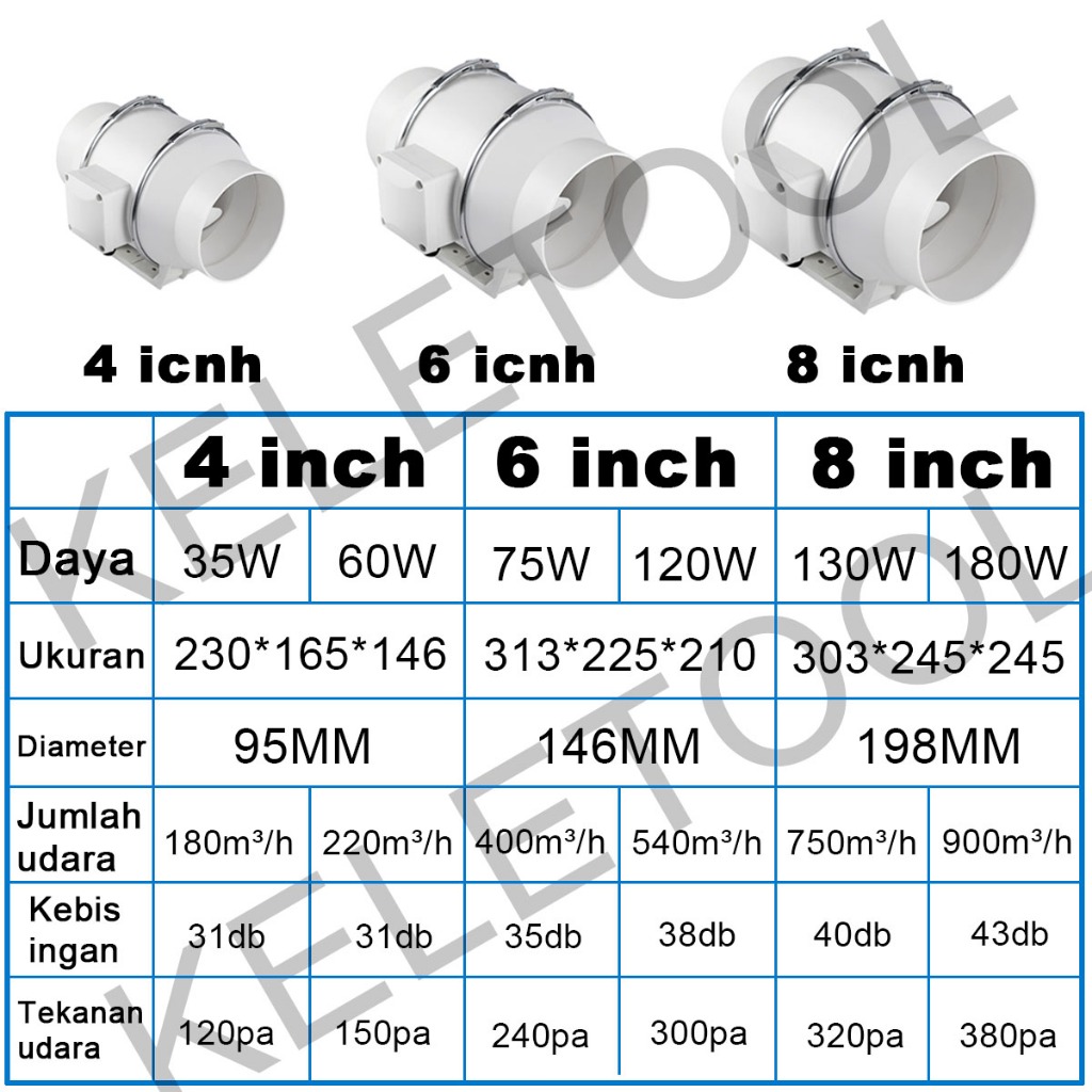 4"6"8"Kipas Angin Buang Diam Ekstraktor Kipas Saluran Sebaris Blower Blower Ventilasi Ventilasi Pembersihan Saluran Sega
