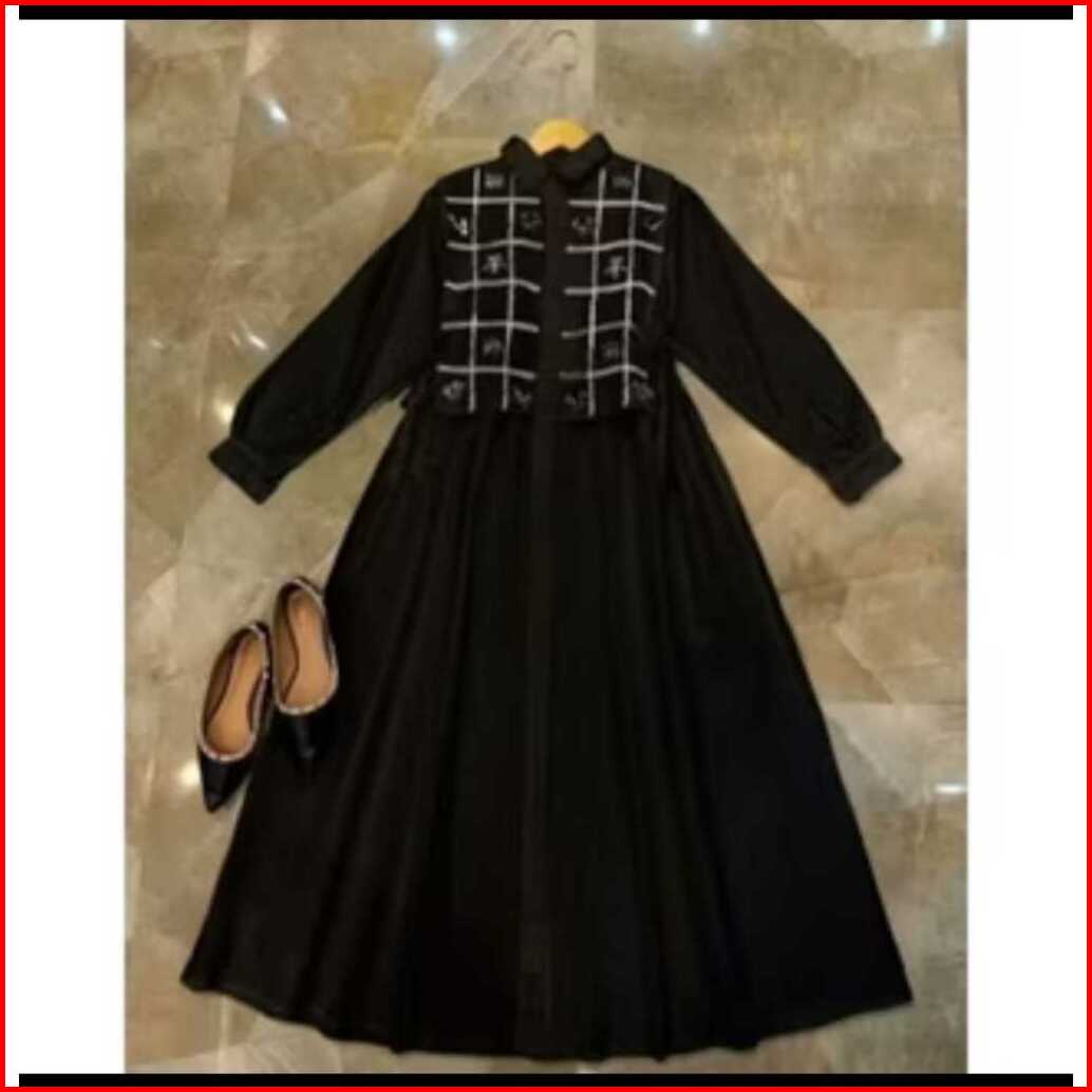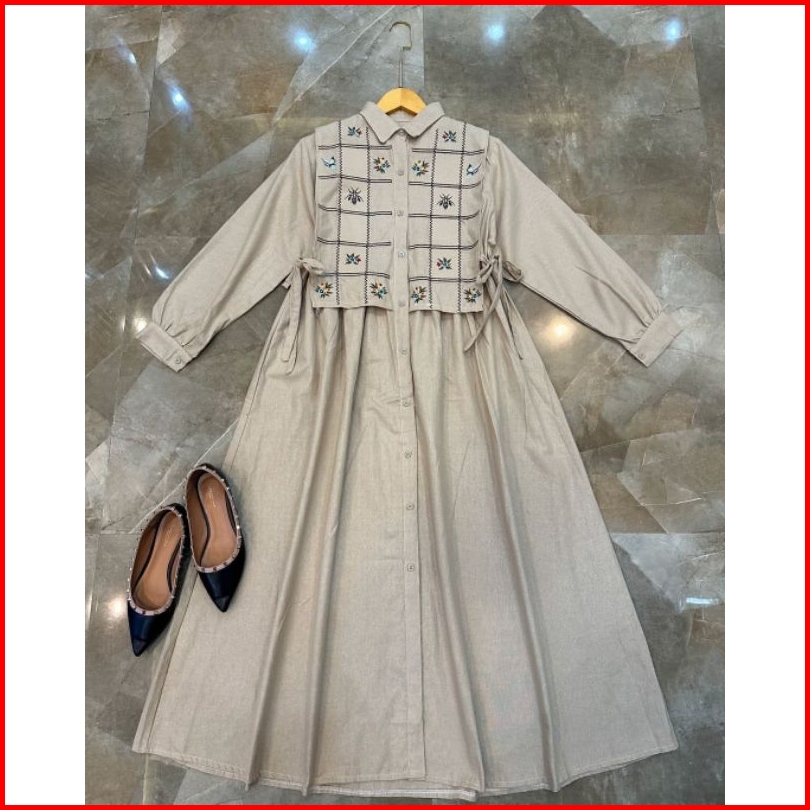 Afifah Dress Gamis Kondangan Remaja Dewasa Kekinian Gamis Mewah Bahan Polo Linen Mix Bordir