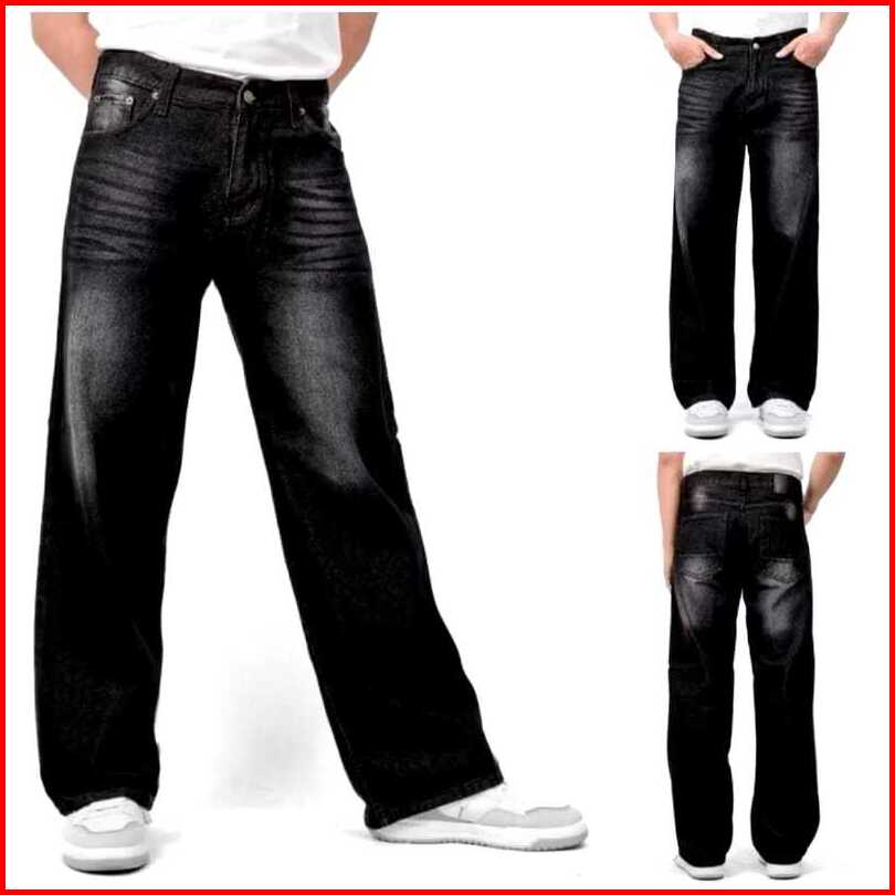 Celana Jeans Pria Black Wisker Loose Fit Reguler Gombrong Standard Denim Washed Wide Leg Skena
