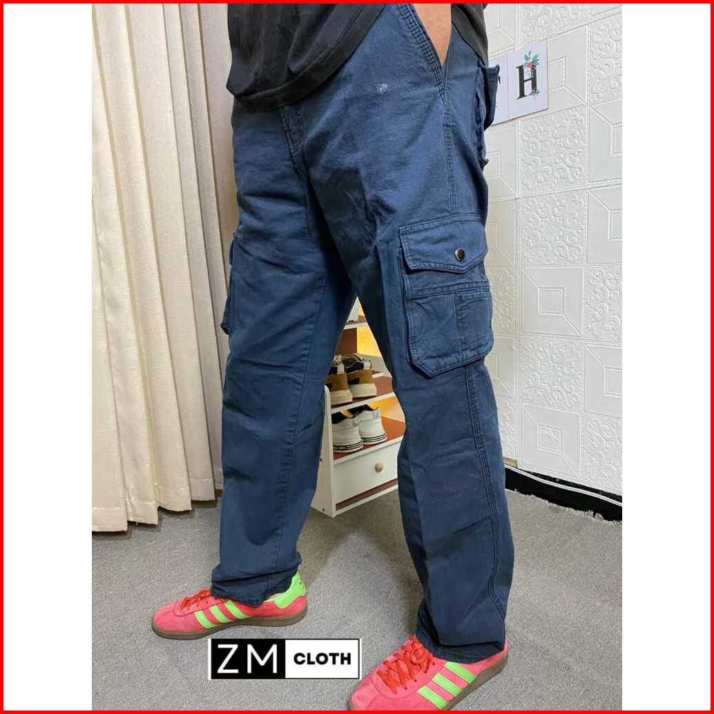 Celana Cargo Panjang Pria Dewasa Bahan Semi Jeans Tebal Nyaman Standar Reguler Fit Casual Formal Distro Denim Hitam Cowo