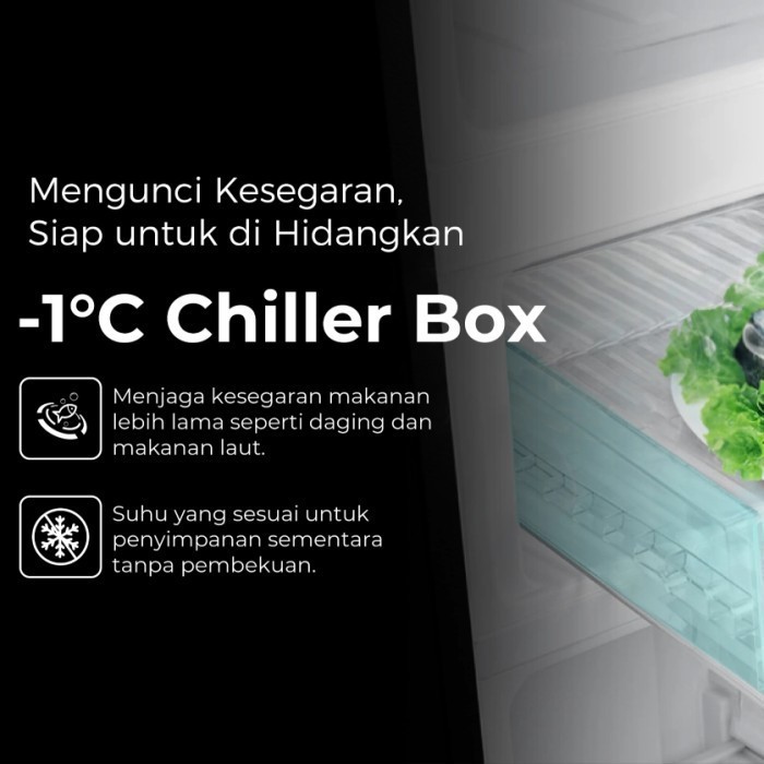 AQUA AQR-DTM285CBP ME KULKAS 2 PINTU 225 LITER 49,5 WATT 545 X 575 X 1530 MM WARNA MATCHA (NEW)