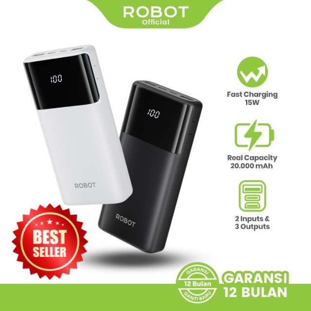 ROBOT Powerbank Fast Charging Power Bank Smart 20000mAh RT22S 15W 3 Port Output with LED Original - Garansi 1 Tahun