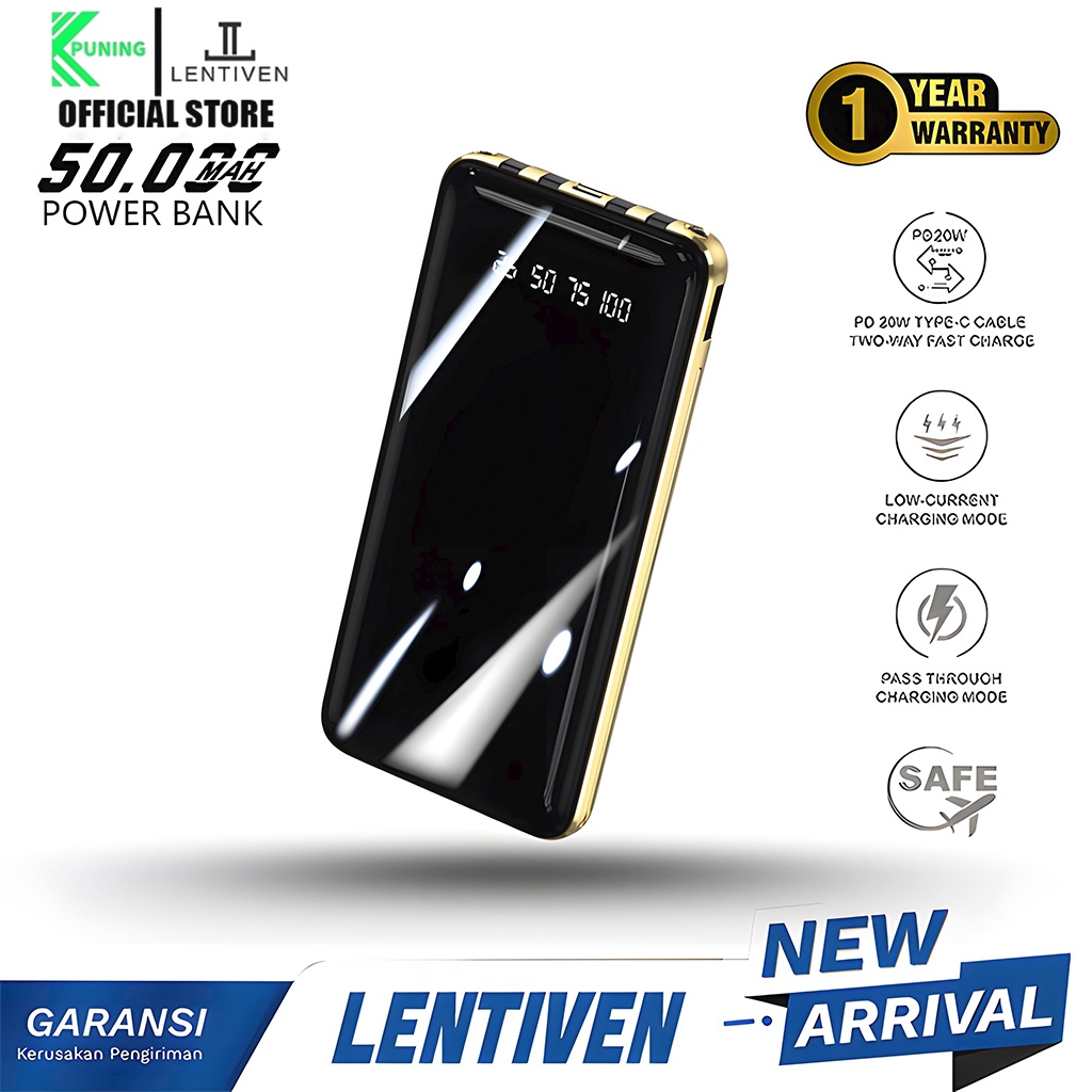 PUNING LENTIVEN PowerBank 50000mAh 4 Cables Full Capacity Mini Fast Charging